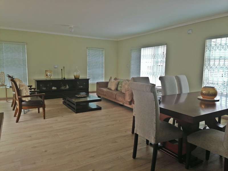 This delighted 3 bedroomed house is situated in a very great area. It features laminated floors throughout spacious living area,open plan dining room which leads to your entertainment area with built-in-braai. 3 Bedrooms with built-in-cupboards, 3 bathrooms. The main bedroom is spacious with a walk-in-closet and en-suite bathroom. Well equipped kitchen with modern built-in-cupboards. Granite tops, center island and gas stove. A double garage completes this property. See this home today, before it is too late.