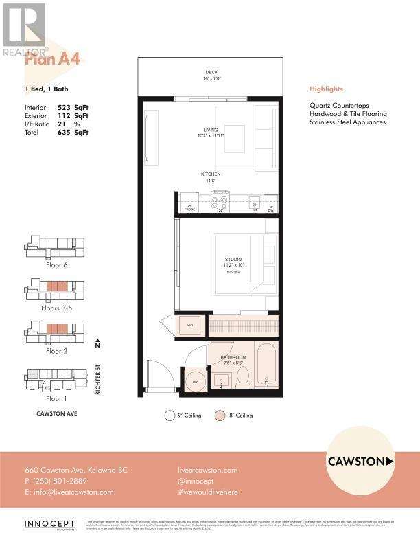 Welcome to Cawston! #410 is a beautiful well laid out 1bdrm; one of the most sought after plans in the building. Cawston is an 82 unit artfully designed development in the heart of downtown Kelowna offering appealing and convenient places to call home. The building was designed to be harmonious with the local community with consciously selected sustainable building materials & high-quality finishings. Located on the fourth floor facing north overlooking Knoxx Mountain and the city of Kelowna #410 offers a quiet and private dwelling. Bike to the Boardwalk, meet friends for happy hour, or go for a swim in the lake after a hike – all within minutes of your doorstep. (id:58403)