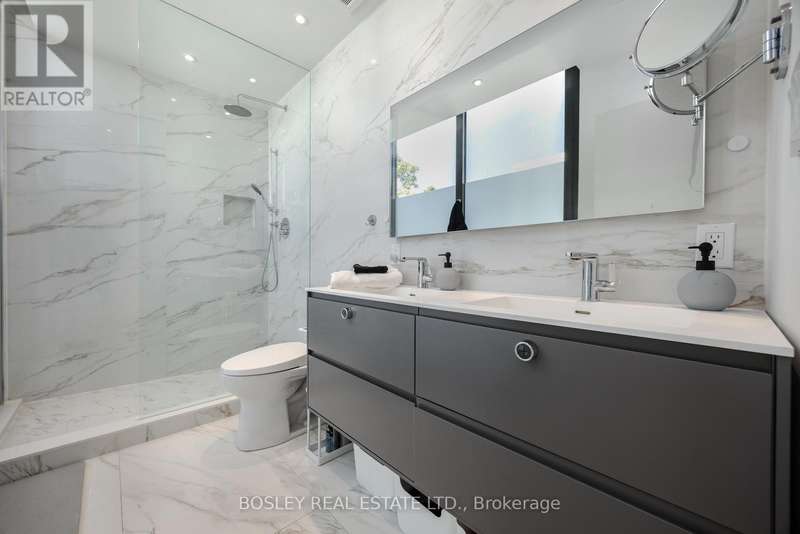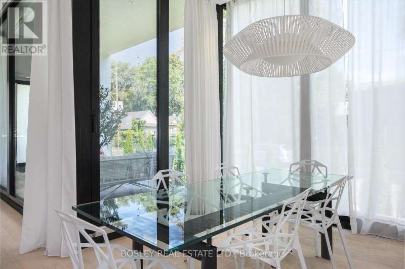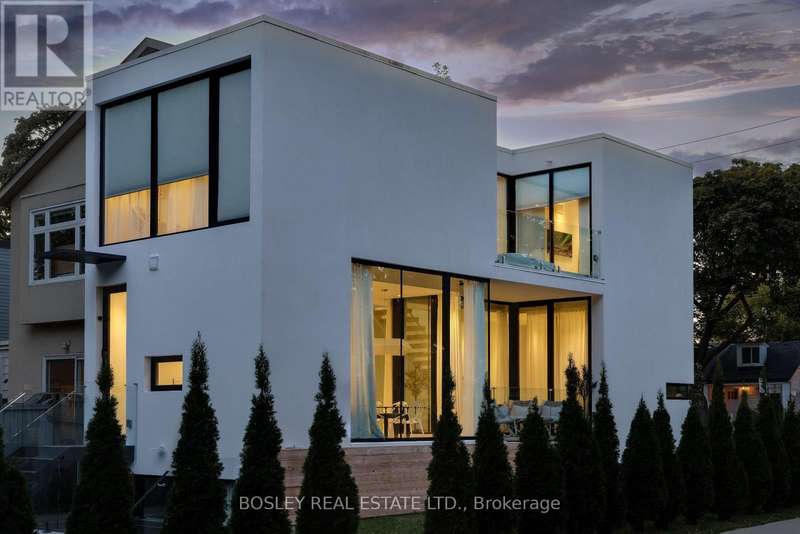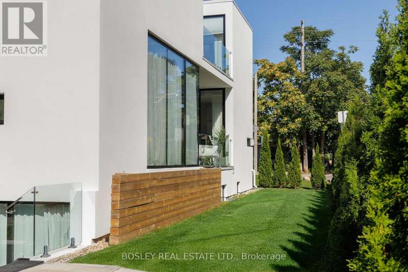 The Lighthaus....Designed by minimalist architect Johnson Chou, this 4 bedroom airy light filled wonder is like nothing else. A rare corner lot wrapped in 30+ cedars gives true privacy while floor to ceiling windows fill every level with daylight. Chou's attention to detail lends itself to perfect calming spa like environments. The Lighthaus is no exception. The roof sheltered central courtyard slides fully open so the 10 ft plus main floor becomes one seamless indoor/ outdoor room. Designed to flow together, each room draws you to the next with delight and excitement. A sculptural floating stair with a full height glass wall anchors the interior. The Lighthaus is detached with its own matching detached garage. 3 luxurious levels each with their own tailored outdoor space. Upstairs the serene primary suite adds 12 ft of custom wardrobes and a sunny terrace with a skylit second bath just down the hall. The bright lower level lives above grade thanks to a sunken courtyard and backyard walkout- ideal for guests, office or play. The space can be expanded to entertain or it can be drawn behind breezy curtains to cocoon yourself in privacy and softness. Practical perks, (garage + private drive, tankless hot water, central HVAC with humidifier and NEST wifi enabled controls) keep life easy. Surrounded by the most sought after schools, Earl Haig and Monarch Park, this lighthaus is surrounded by ravines and parks. It is a short stroll to the Danforth where the culinary delights are ever expanding. A few minutes drive to the beach and close to the subway it is tucked in one of the most convenient and leafy pockets in the city. It is a rare gem, like a purple taaffeite, barely ever seen and almost never for sale. Lighthaus lives as beautifully as it looks.