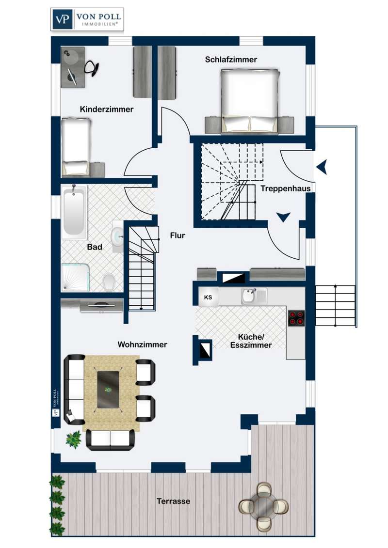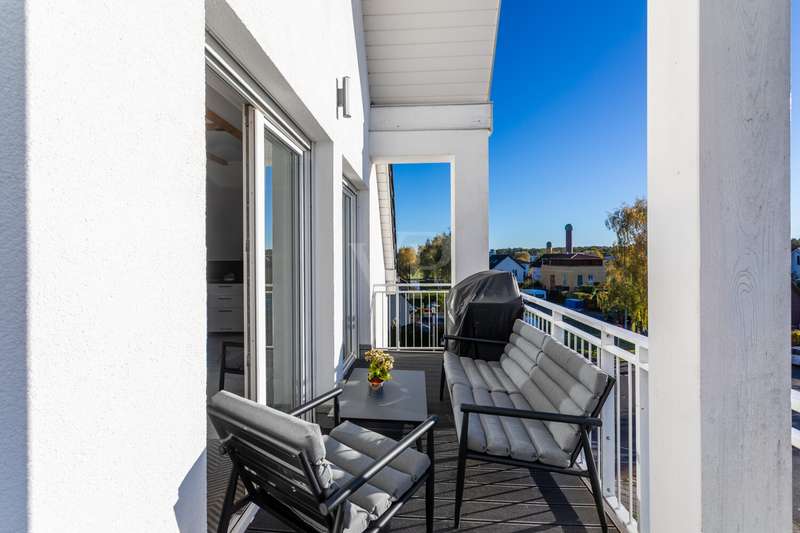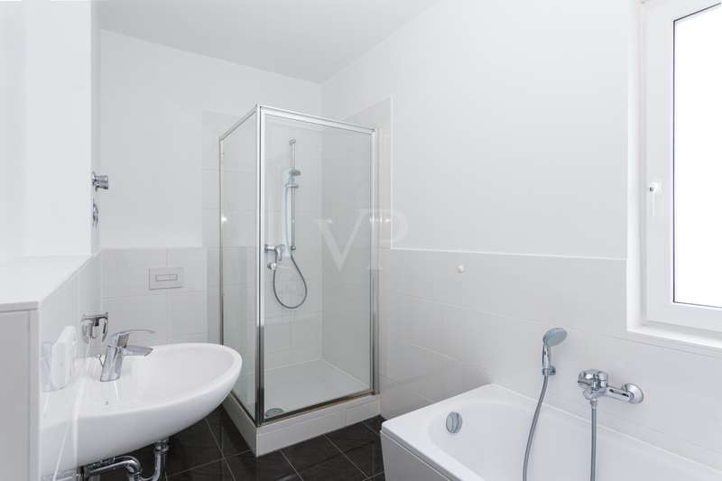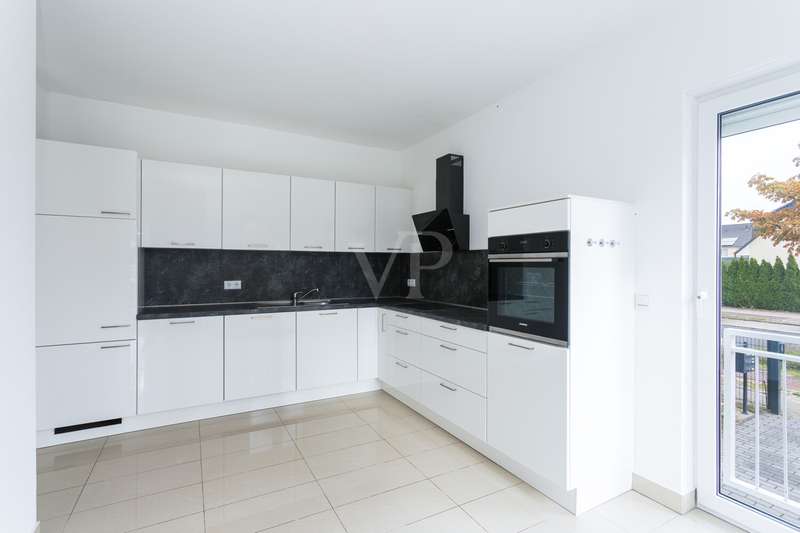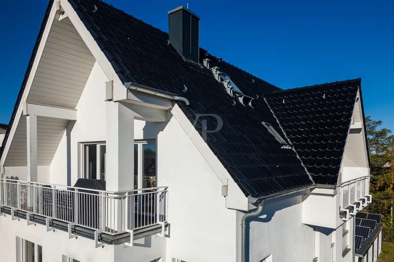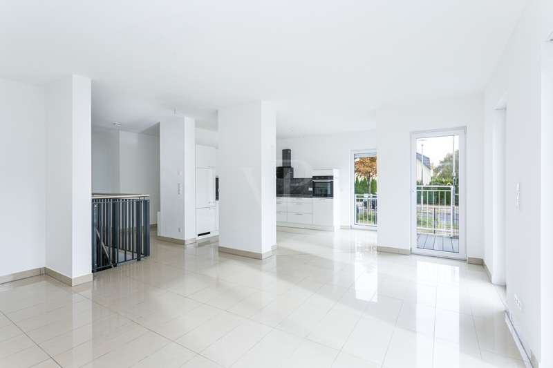 This modern villa in gleaming white combines special architecture with large window fronts and the play of room heights and light. Three spacious residential units, which you can either rent out or move into yourself, await you here. The as-new house gives you the opportunity to start renting directly: no construction stress, no incalculable construction costs and sophisticated furnishings! The modern and high-quality villa offers three self-contained residential units on two full floors and an attic. There is also a very usable basement. This gives you a total living space of around 400 m² with state-of-the-art technology. The bright apartment on the first floor is flooded with light and features large windows, light-colored tiles and a modern kitchen. A large living/dining area, two bedrooms and an elegant bathroom with shower and bathtub, as well as a large, wonderful sun terrace round off the offer on this floor. The space on offer is further extended by various very usable rooms in the basement, which is directly connected to the first floor by a staircase in the living room. These rooms can be used as bedrooms, children's rooms, study rooms or guest rooms - the bathroom is equipped with a modern shower. The layout of the upper floor is similar to that of the first floor apartment - both apartments can be rented out to couples or small families. The top floor is very attractively finished - a bright living area with an open kitchen and sunny roof terrace. From here you have a spectacular view and can experience wonderful sunrises. The spacious bedroom and a bathroom with bathtub also make this apartment a good rental unit. This spectacular property would also make an excellent unit for a large family or several generations - you can adapt the 400 m² of living space to suit your needs. The basement offers plenty of space for your individual use - whether as an office floor or small separate unit, fitness oasis or haven of peace - the rooms can be used in a variety of ways thanks to the high ceilings and good lighting. The entire house is heated by underfloor heating. The gas heating, including hot water preparation, is located in a utility room in the basement. The water heating is supported by solar panels. Two parking spaces round off the offer. If you are interested, please contact us - we look forward to hearing from you!