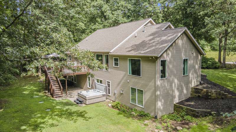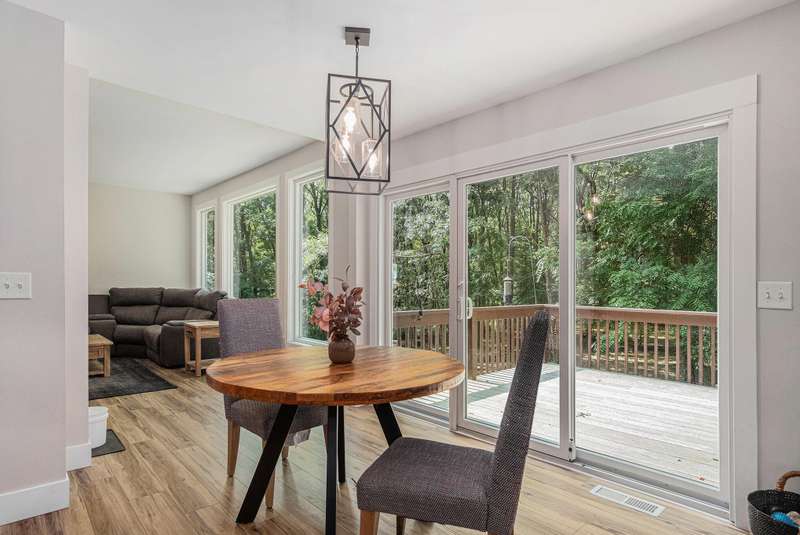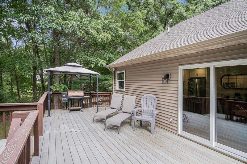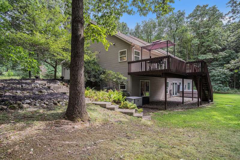 Enjoy peace, privacy, and modern living in this completely updated 4-bedroom, 2.5-bath ranch home offering just under 2,700 sq. ft. of finished living space. Located in The Conservancy neighborhood and set on a 1.5-acre wooded lot alive with wildlife, this home provides the perfect balance of natural beauty and everyday convenience-just minutes from downtown Ada and in desirable Lowell Schools. No detail was overlooked in the renovation. The all-new kitchen features upgraded KitchenAid appliances, new countertops, and a stylish backsplash. Brand new Pella windows have been installed throughout, including several enlarged openings with picture windows to capture wooded views, along with a new Pella exterior door. The home also boasts fresh paint and new flooring throughout, creating a truly move-in-ready experience. The main floor primary suite includes a walk-in closet and an ensuite bathroom with a dual-sink vanity, and the convenience of main-level laundry adds to the home's functional design. Step outside to a large composite deck overlooking the private backyardperfect for relaxing or entertaining. The walkout lower level provides exceptional living space with two additional bedrooms, a full bathroom, a large rec room, a workout room, and abundant storage. Additional extras include underground sprinkling to keep the grounds lush and a whole-house generator for peace of mind in any season. This thoughtfully updated home combines the charm of a private wooded setting with quick access to shopping, dining, and commuting routes.