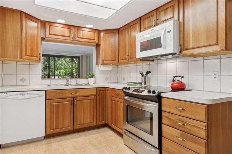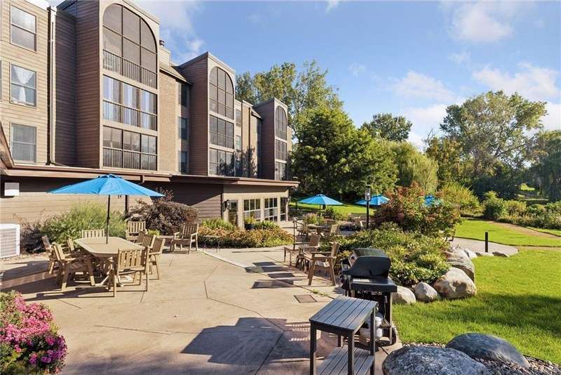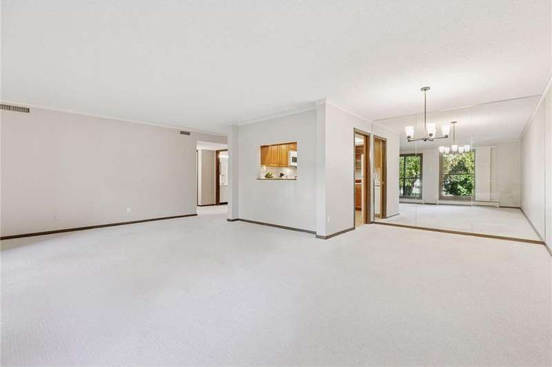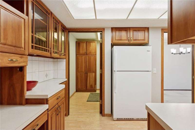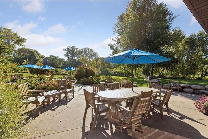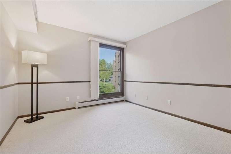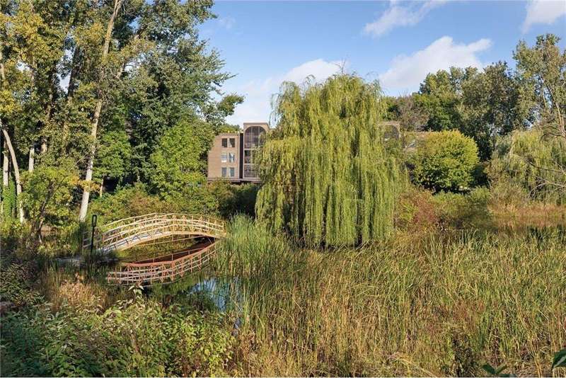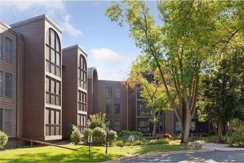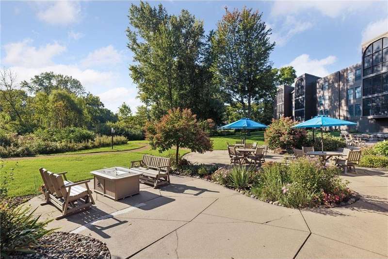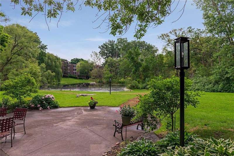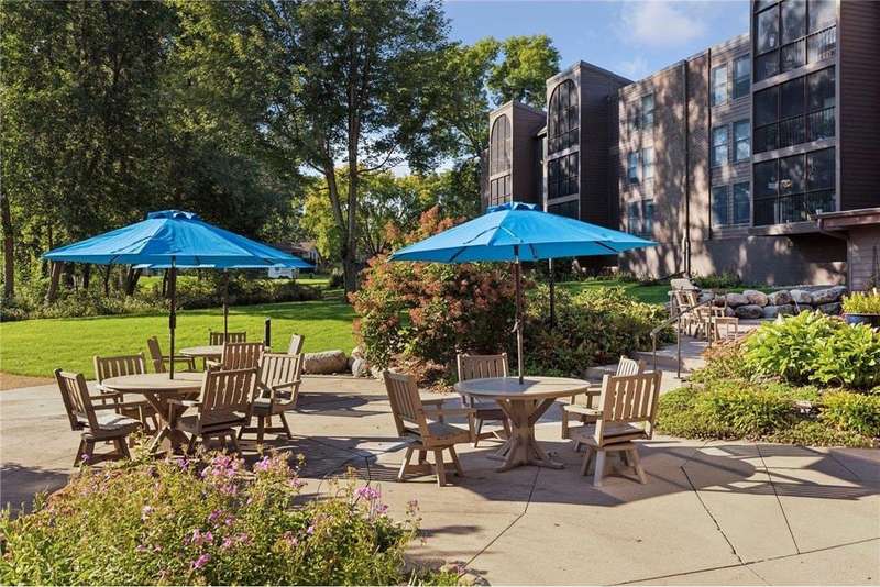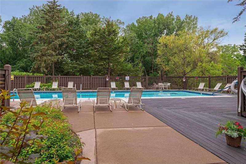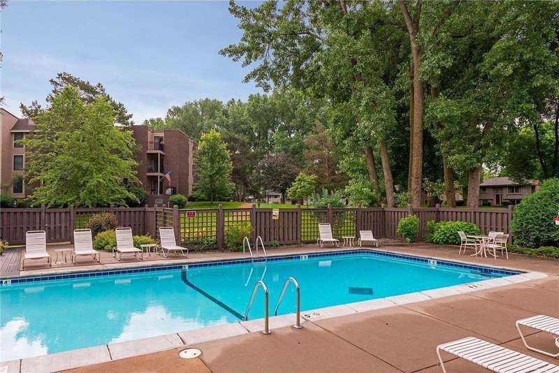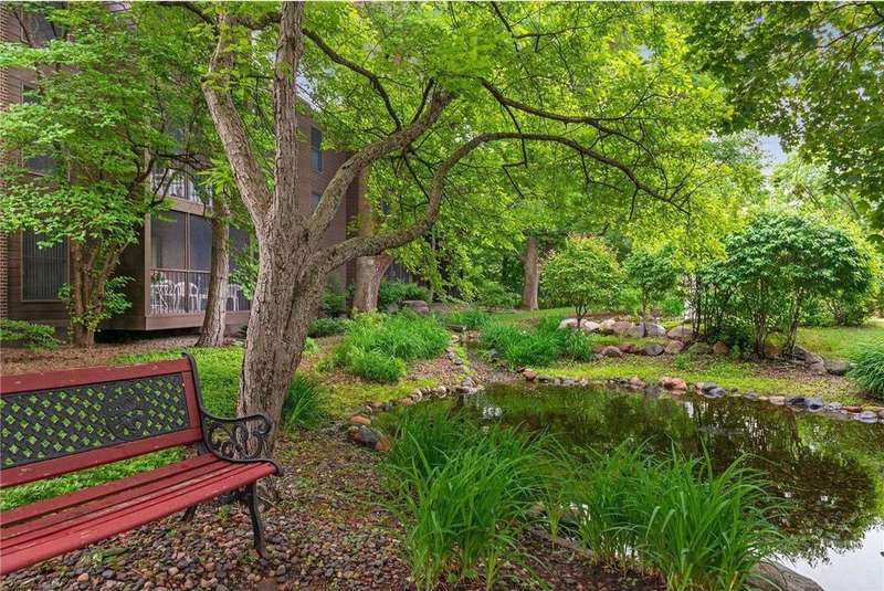 Welcome to Girard Park West! Perfectly located in a quiet tucked away neighborhood of single-family homes with beautifully kept grounds featuring multiple water features, ponds, patios, and walking paths! Clean, freshly painted, and move-in-ready, this light filled condo has a nicely sized kitchen with upgraded cabinetry including a built-in buffet and a desk, formal dining space and expansive living room with sliding glass door out to the 3-season porch, perfect for relaxing, dining, and card games. 2 bedrooms and 2 bathrooms are down the hall including a large primary suite with walk-in closet and private 3/4 bath. In-unit laundry room with a sink has additional cabinetry for storage. Underground, heated parking + dedicated storage unit. Unmatched amenities including an indoor and outdoor pool, hot tub, sauna, multiple patios with seating, firepits and grills, a workshop, guest suite, community room and more! Dues cover cable, internet, and all utilities with the exception of electric. Move in and enjoy!