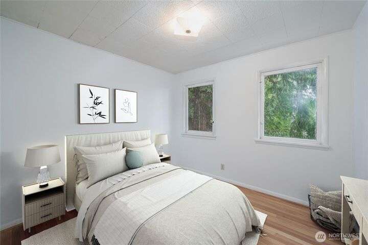 Perched above the street on a large 8000+ sqft lot, this 2 bed/1 bath property offers endless possibilities & significant development potential. Morning sunshine floods through the living room and bedroom windows creating bright, welcoming spaces perfect for your renovation dreams. Features beautiful hardwood floors throughout living room, dining room, and both bedrooms, plus a backyard oasis with back patio and plenty of gardening space for your green thumb. Prime Maple Leaf location provides easy access to UW, downtown Seattle, Northgate & Green Lake. The unbeatable location makes it perfect for investors or homeowners looking to create their dream home or explore development opportunities in one of Seattle's most desirable neighborhoods.