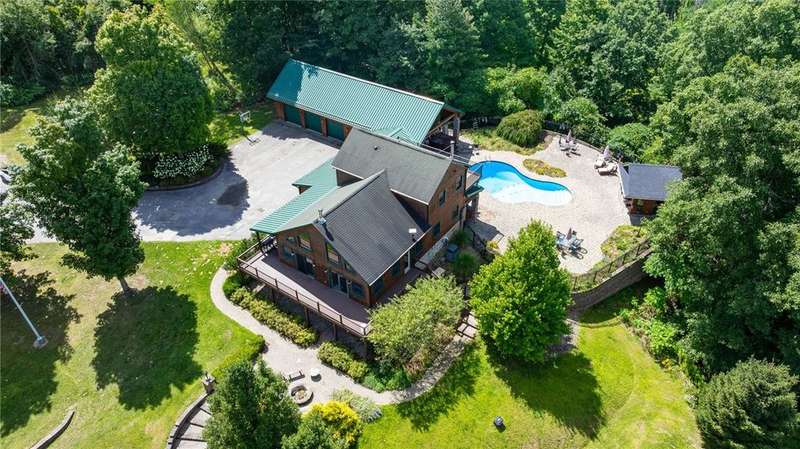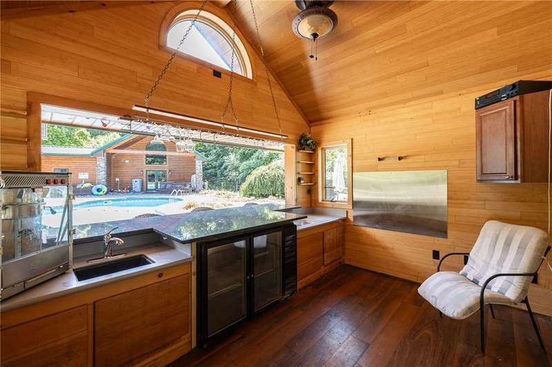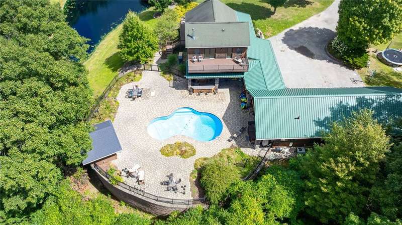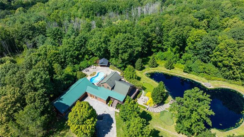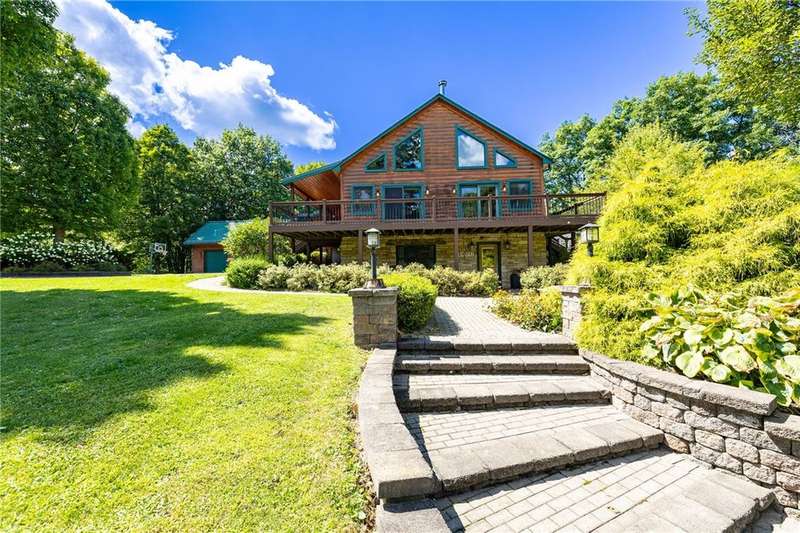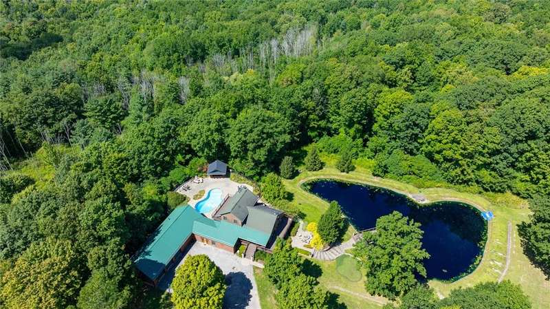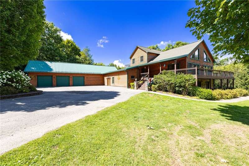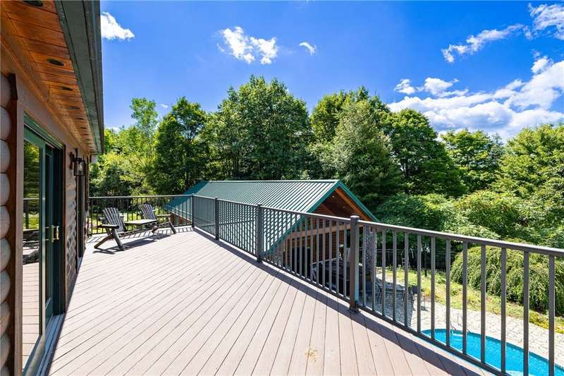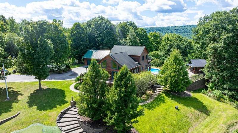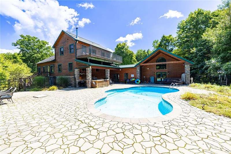 **ONE OF THE MOST BREATHTAKINGLY BEAUTIFUL RESORT STYLE HOMES NY HAS TO OFFER**THIS EXCEPTIONAL PIECE OF REAL ESTATE OFFERS THE PERFECT FUSION OF RUSTIC CHARM AND REFINED LUXURY**NESTLED AMID LUSH, TREE-LINED GROUNDS, YOU WILL FIND THE ULTIMATE PEACE AND TRANQUILITY** INGROUND POOL, OUTDOOR KITCHEN, CABANA/POOL HOUSE, AND HOT TUB ARE JUST A FEW OF THE OUTDOOR LUXURIES YOU WILL BE ABLE TO ENJOY**STEP INSIDE TO SOARING CEILINGS WRAPPED IN RICH NATURAL WOOD, BATHED IN SUNLIGHT THROUGH EXPANSIVE WINDOWS*? PERFECTLY DESIGNED KITCHEN FEATURES NEW STAINLESS STEEL APPLIANCES, OVERSIZED ISLAND, AND EAT-IN, OVERLOOKING YOUR LIVING SPACE WITH AN EXQUISITE FLOOR TO CEILING STACKED STONE GAS FIREPLACE*THE PRIMARY SUITE INCLUDES CUSTOM BAR, PELLET STOVE PERFECT FOR THOSE COLDER NIGHTS, FULL BATH AND WALK IN CLOSETS* THIS HOME ALSO INCLUDES AN IN-LAW OR TEEN SUITE WITH SPIRAL STAIRCASE, FULL BATH, LOFT BEDROOM, AND DOORS TO YOUR BACKYARD PATIO/POOL AREA* PRIVATE DRIVEWAY, HUGE POND WITH PERMANENT DOCK, PUTTING GREEN, TWO STORY BALCONIES, AND SO MUCH MORE** THIS PROPERTY IS PERFECT FOR FAMILY LIVING OR THE PERFECT VENUE FOR YOUR NEXT EVENT OR EVEN AIR BNB!!!**