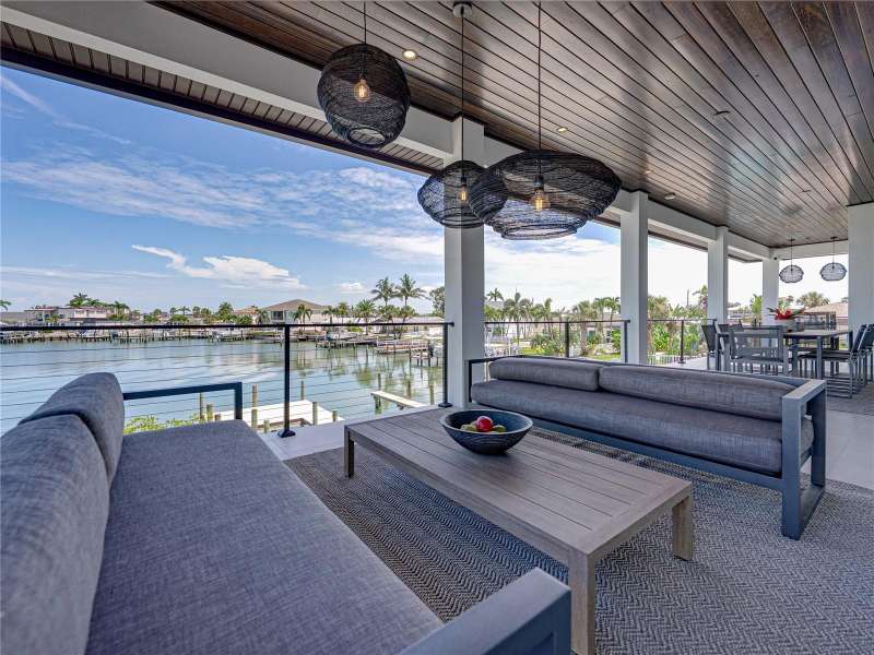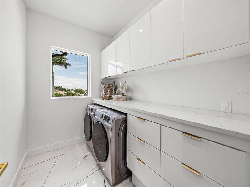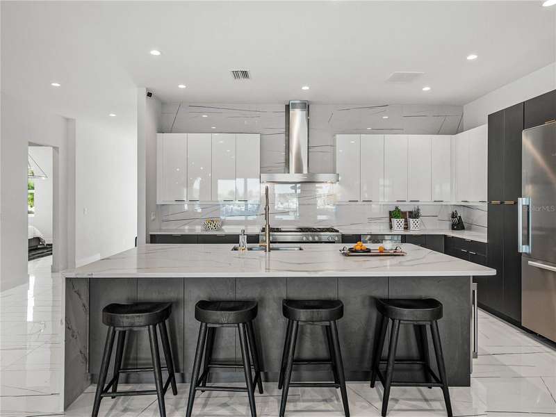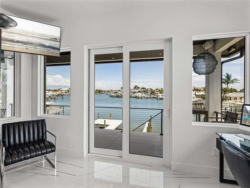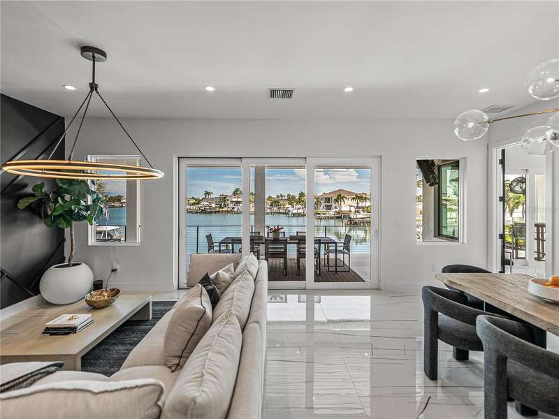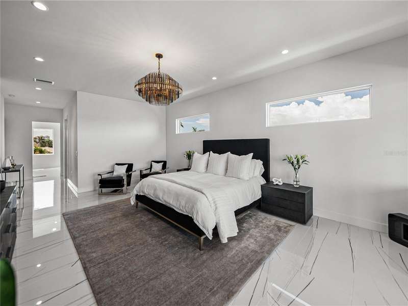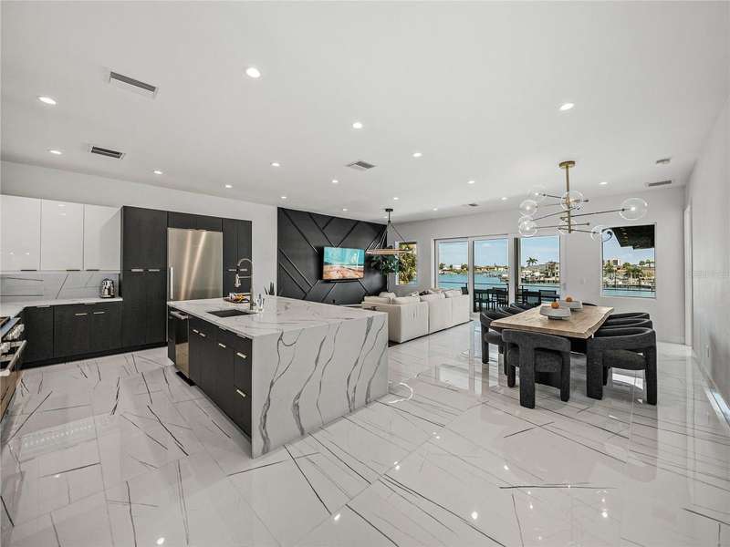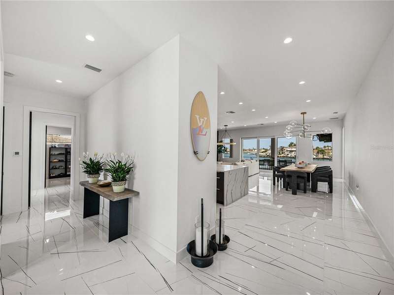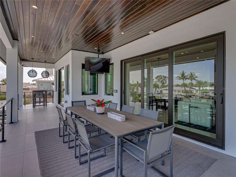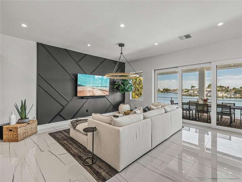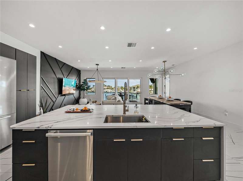 Timeless clean line architecture meets luxury waterfront contemporary Italian design with this 2022 custom built home in the charming community of Yacht Club Estates. The foyer welcomes you with modern elegance, leading past a striking accent wall and a glass-enclosed wine display room toward the staircase to the main living area. The main floor offers fabulous water views with its open concept and access to the upper lanai. You’ll notice top line finishes throughout with light-filled living spaces including a chef’s kitchen outfitted with Miele gas range/oven convection combination with upgraded range hood, Miele refrigerator, microwave drawer and undercounter beverage refrigerator. The solid wood custom cabinets pair perfectly with the expansive center island which is ideal for casual gatherings and entertaining guests. As you move through the living and dining areas the inviting lanai awaits with solid wood tongue and groove ceilings, designer lighting fixtures and views of the heated saltwater infinity edge pool/spa with over 2000 sf of exotic travertine and turf landscaping design. Steps away, the composite oversized dock boast electricity, solar uplighting and running water. The primary bedroom is a calming oasis with lovely water views, access to the lanai and large custom closet. The stunning bath area showcases a free-standing tub and enhanced double walk-in shower all elegantly designed as a spa environment. Three additional bedrooms include custom closets and designer lighting. Downstairs highlights a car collector’s dream garage with parking for up to 10 prized cars or an incredible flex activity area with French doors leading to the lower lanai with the resort style pool. The home also includes Restoration Hardware designer chandeliers and recessed lighting on dimmers throughout, separate laundry room, tankless water heaters, Sonos system w/all existing Smart TVs, battery powered BLINK camera system, irrigation system and outdoor corner motion detector security lighting. The location couldn't be better with world famous pristine beaches nearby and the vibrant downtown St Petersburg, just a 20 minute drive away, offers enticing dining, museums, entertainment experiences and professional baseball and soccer teams. This tranquil residence with its exquisite sunset views offers the ideal blend of elegance, and waterfront living for the lifestyle you desire.