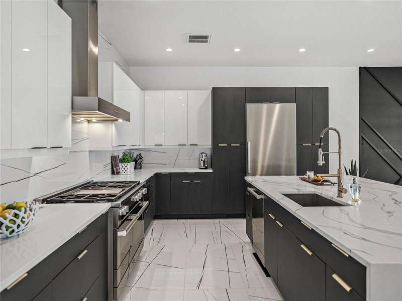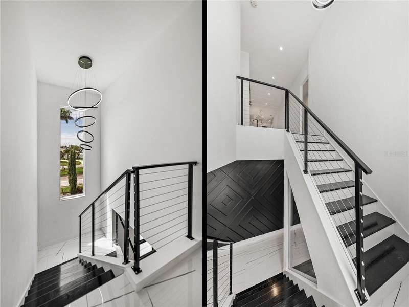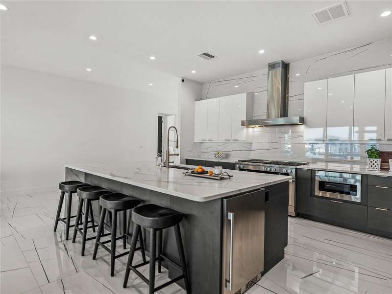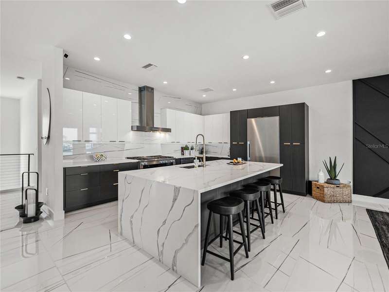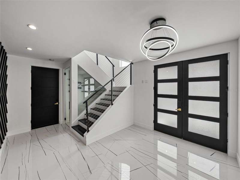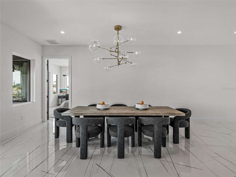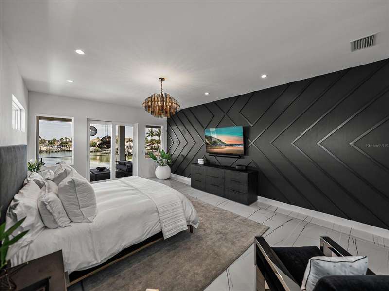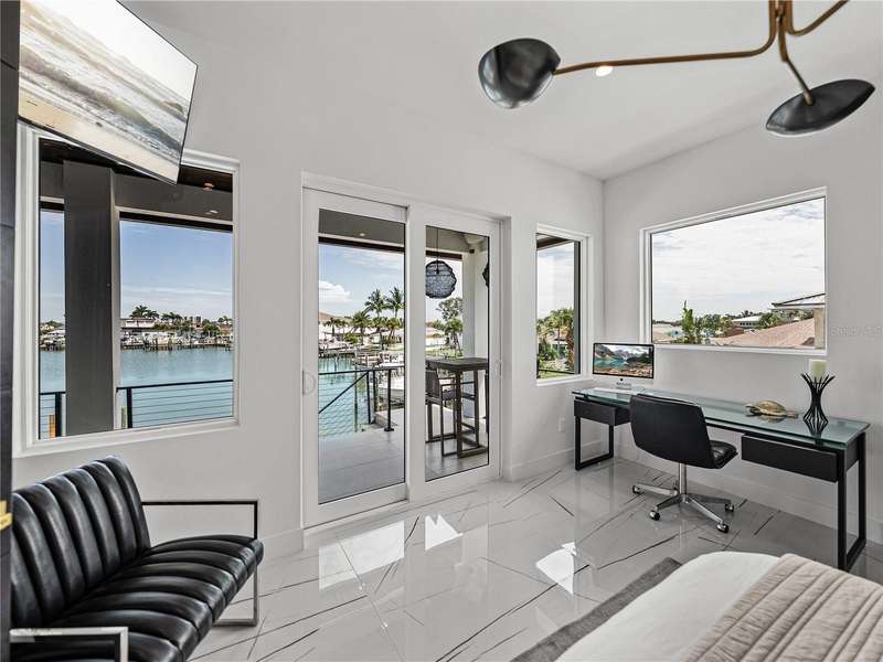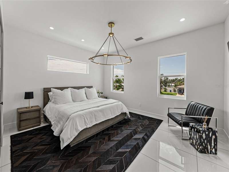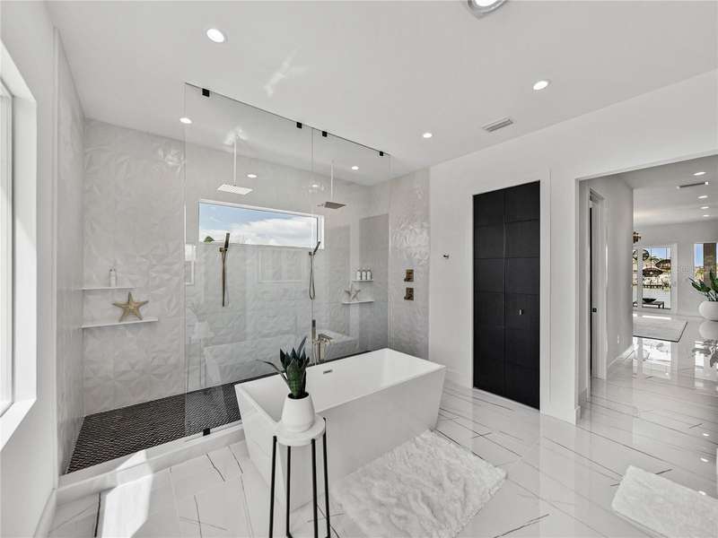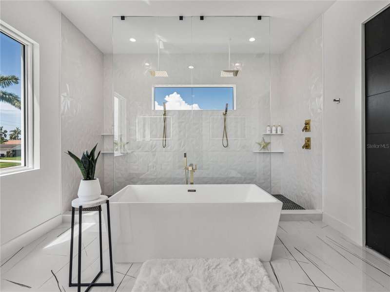 Timeless clean line architecture meets luxury waterfront contemporary Italian design with this 2022 custom built home in the charming community of Yacht Club Estates. The foyer welcomes you with modern elegance, leading past a striking accent wall and a glass-enclosed wine display room toward the staircase to the main living area. The main floor offers fabulous water views with its open concept and access to the upper lanai. You’ll notice top line finishes throughout with light-filled living spaces including a chef’s kitchen outfitted with Miele gas range/oven convection combination with upgraded range hood, Miele refrigerator, microwave drawer and undercounter beverage refrigerator. The solid wood custom cabinets pair perfectly with the expansive center island which is ideal for casual gatherings and entertaining guests. As you move through the living and dining areas the inviting lanai awaits with solid wood tongue and groove ceilings, designer lighting fixtures and views of the heated saltwater infinity edge pool/spa with over 2000 sf of exotic travertine and turf landscaping design. Steps away, the composite oversized dock boast electricity, solar uplighting and running water. The primary bedroom is a calming oasis with lovely water views, access to the lanai and large custom closet. The stunning bath area showcases a free-standing tub and enhanced double walk-in shower all elegantly designed as a spa environment. Three additional bedrooms include custom closets and designer lighting. Downstairs highlights a car collector’s dream garage with parking for up to 10 prized cars or an incredible flex activity area with French doors leading to the lower lanai with the resort style pool. The home also includes Restoration Hardware designer chandeliers and recessed lighting on dimmers throughout, separate laundry room, tankless water heaters, Sonos system w/all existing Smart TVs, battery powered BLINK camera system, irrigation system and outdoor corner motion detector security lighting. The location couldn't be better with world famous pristine beaches nearby and the vibrant downtown St Petersburg, just a 20 minute drive away, offers enticing dining, museums, entertainment experiences and professional baseball and soccer teams. This tranquil residence with its exquisite sunset views offers the ideal blend of elegance, and waterfront living for the lifestyle you desire.