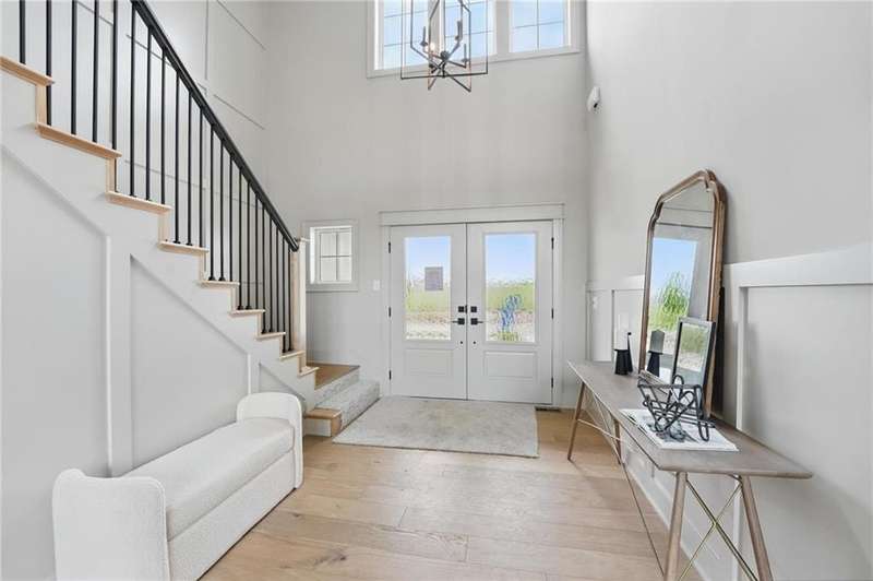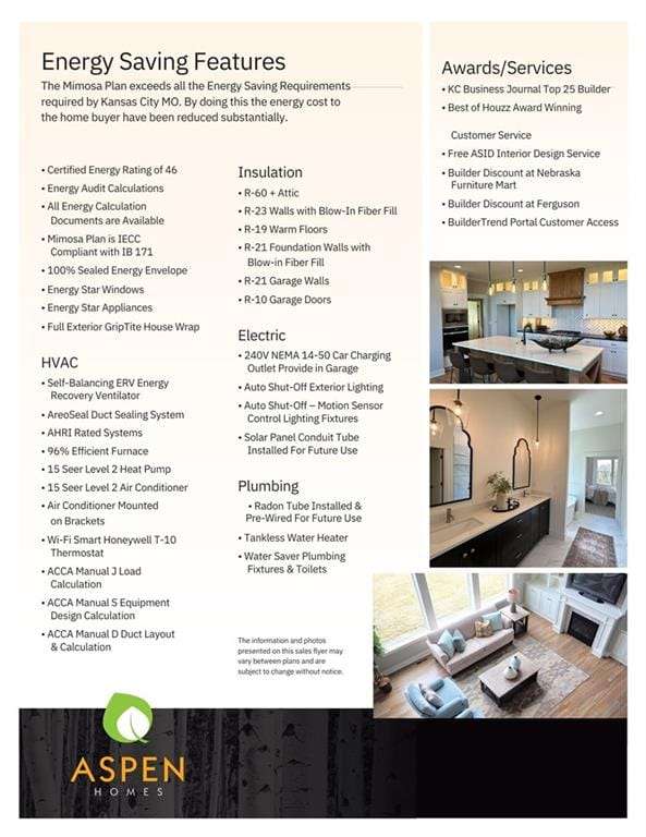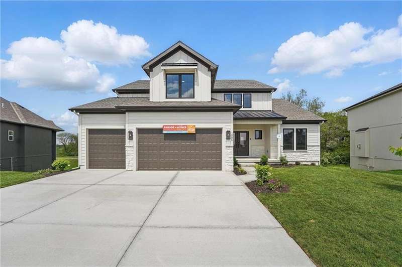 Model Home Now For Sale! Aspen Homes Mimosa 1.5 Story on Luxurious Walkout Lot! This stunning home is complete & ready to move in! Perfectly situated on a coveted walkout lot, backing to serene trees & green space, offering privacy and picturesque views. This luxurious home boasts a modern farmhouse exterior, featuring a blend of board and batten, lap siding, stone accents, and a striking metal roof over the front porch a true showstopper! Step inside and experience the elegance of this thoughtfully designed home, complete with high-end finishes throughout. The heart of the home includes a gourmet kitchen outfitted with JennAir luxury appliances, including a gas cooktop, sleek quartz countertops, and a spacious island with a fluted edge detail perfect for cooking and entertaining. The open floor plan flows seamlessly into the cozy living room, where youll find a breathtaking stone-toceiling fireplace, adding warmth and sophistication to the space. The primary suite is a sanctuary of luxury, featuring a zero-entry primary shower for easy access, a free-standing soaker tub for relaxation, and top-of-the-line design finishes throughout. This home is built for comfort and convenience, with a covered deck complete with premium Fiberean composite flooring ideal for enjoying the outdoors year-round. Energy efficiency is at the forefront of this homes design. With a Certified Energy Rating of 46, this property offers Energy Star windows and appliances, blown-in insulation, a tankless water heater, and an energy efficient HVAC system that includes a self-balancing ERV energy recovery ventilator and Aeroseal duct sealing system. Youll enjoy a home thats not only luxurious but also environmentally conscious. Located within the Award-winning North Kansas City School District in the Staley High School Attendance area. Hunt Midwest Community offering completed swimming pool and walking trails. Furniture not included. Taxes & SqFt estimated.