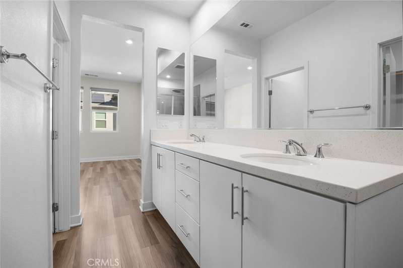 From the moment you arrive, you'll appreciate the two-car attached garage and gated community access for added comfort and security. The main living level features an open-concept design with upgraded wood-style flooring, abundant natural light, and seamless flow between the living room, dining area, and kitchen. The gourmet kitchen is a true highlight -- showcasing quartz countertops, a full tile backsplash, a six-burner gas cooktop, and premium stainless-steel appliances. Step outside to your private second-floor balcony, ideal for morning coffee, evening relaxation, or entertaining with a view of the landscaped courtyard and community spaces. Upstairs, you'll find two spacious bedrooms, each with its own ensuite bathroom for maximum comfort and privacy. The primary suite impresses with full-height tile surrounds, a walk-in shower, and designer finishes throughout.