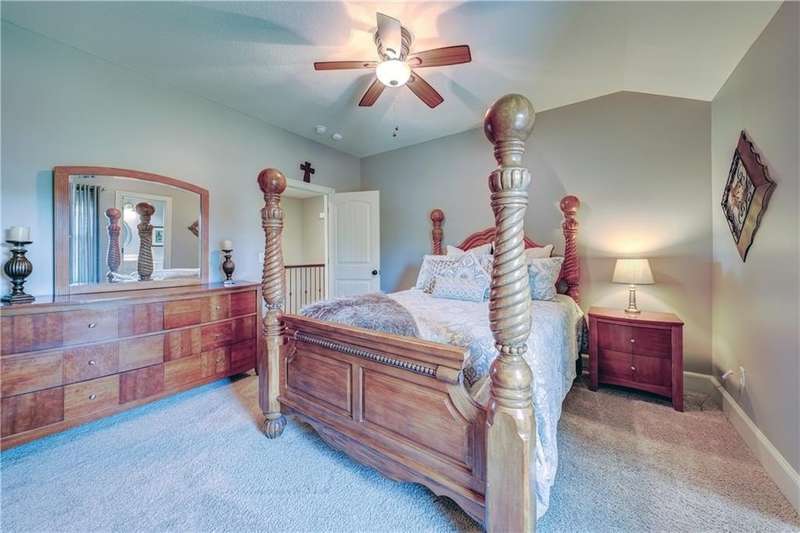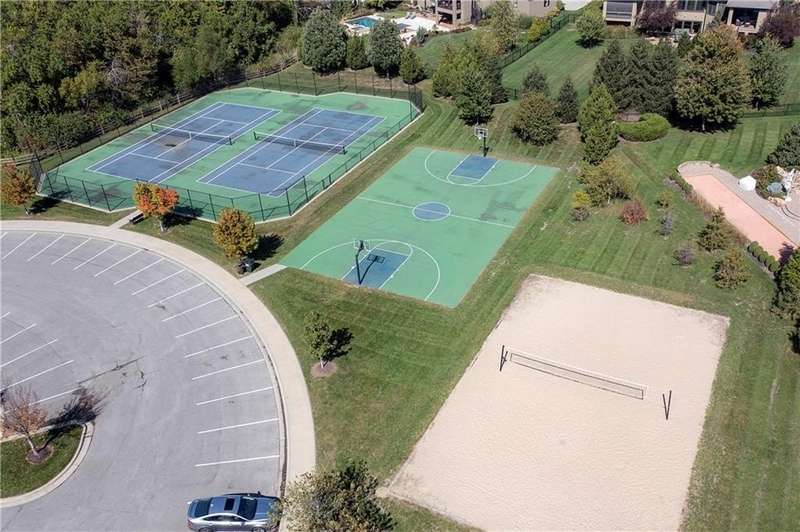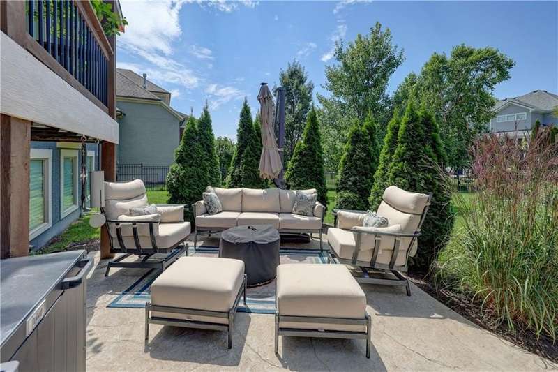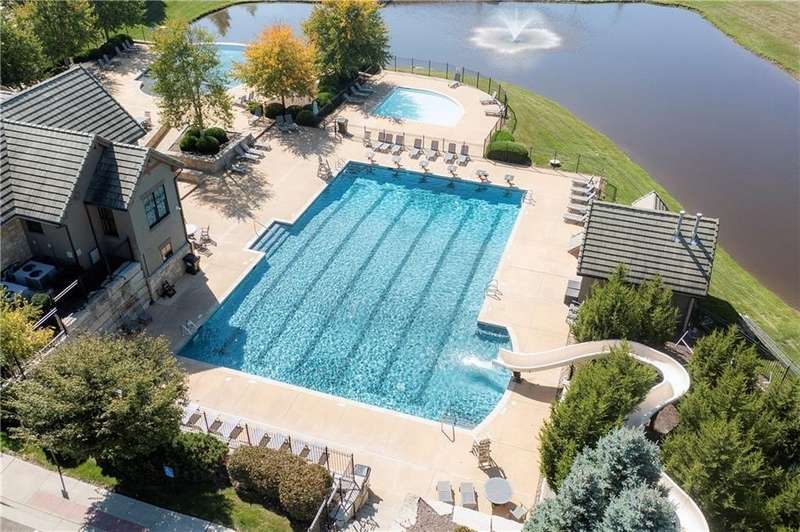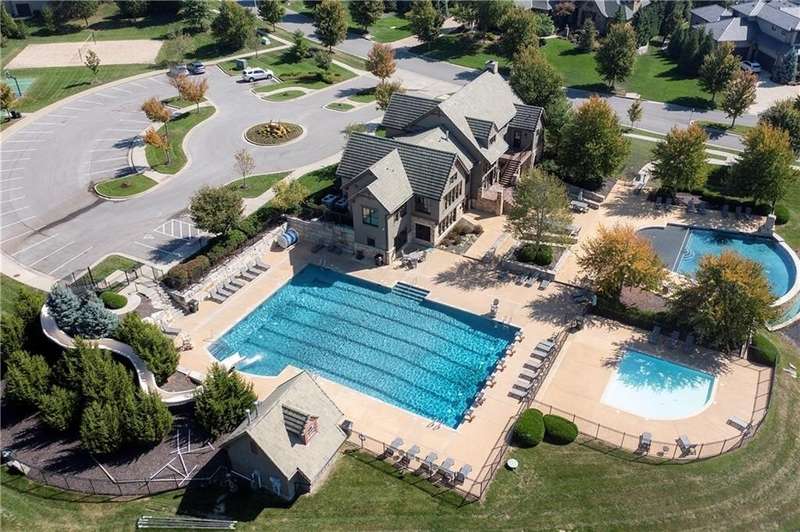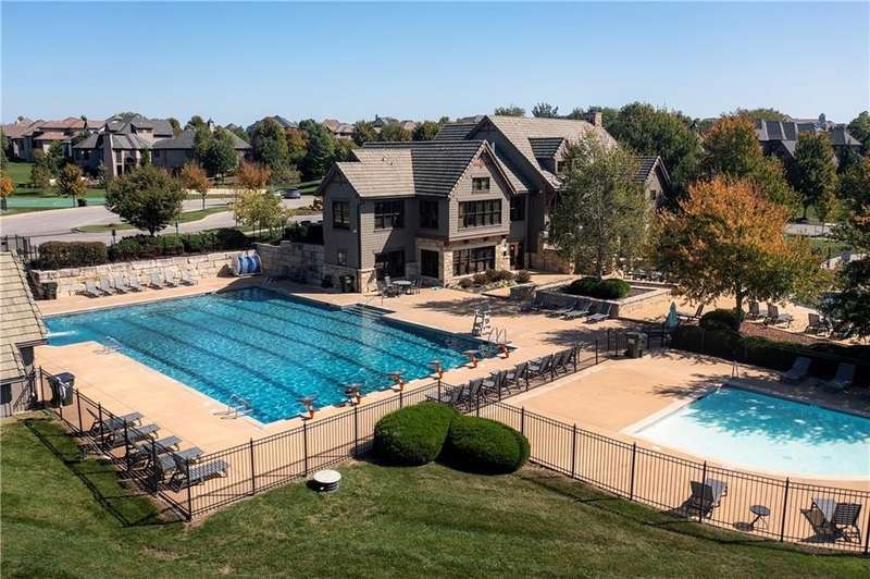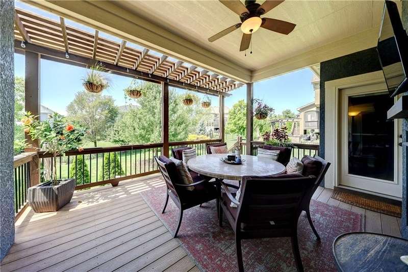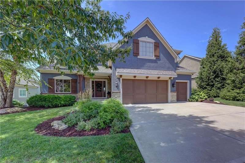 Great opportunity to live in Mills Farm within the top-rated Blue Valley school district. This 5-bedroom/5-bath two-story was quality built by Estes Homes and it shows in the trim work and details throughout. An impressive two-story foyer sets the tone, flanked by a vaulted dining room with wood beams and a first floor office/flex/bedroom next to a ¾ bath. The kitchen checks every box: large walk-in pantry, butler’s pantry with beverage fridge, large island, 5-burner gas cooktop, and front/back staircases for easy flow. Professionally refinished hardwoods on most of first floor and brand-new upgraded carpet (except the flex room). Full stucco exterior with newer paint. Outdoors is built for everyday living: a large covered deck with low-maintenance composite decking, outdoor fireplace with TV hook-up, a generous stamped patio, and a black metal fence. Three total fireplaces add warmth inside and out. The daylight lower level brings in natural light through seven windows and is ready to finish for additional living space. Roof is less than a year old. Enjoy the Mills Farm lifestyle, full of amenities, including: three pools, remodeled clubhouse with workout room, play area, pickleball, tennis courts and sand volleyball!