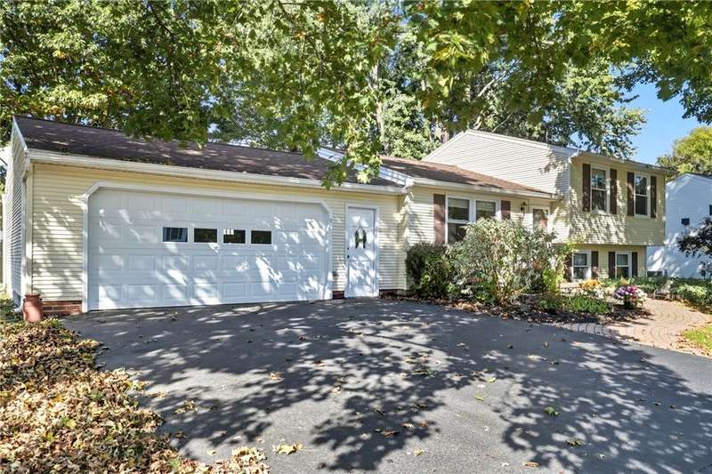 Welcome to this beautifully maintained 3-bedroom, 1-bath split-level in a sought-after West Henrietta neighborhood. Carefully updated and impeccably maintained by the original owners throughout its 55-year ownership, this home is move-in ready. The updated kitchen features hardwood floors, solid oak cabinetry, and granite counters. A bright bathroom with skylight and Jetted Tub, along with a spacious lower-level family room, add to the appeal. Vinyl siding, an architectural roof, upgraded windows, and a 2018 high-efficiency furnace provide comfort and low-maintenance living for years to come. Outside, enjoy the oversized 2.5+ car garage, extra-wide driveway, storage shed, and a mature treed yard with low-maintenance landscaping. Showings begin Thursday 10/2 at 2:00pm. Delayed Negotiation: The seller will review YOUR offer Monday 10/6 after 3:00pm. OPEN HOUSE Sunday 10/5 from 11:00?2:00.