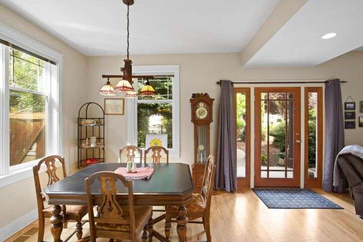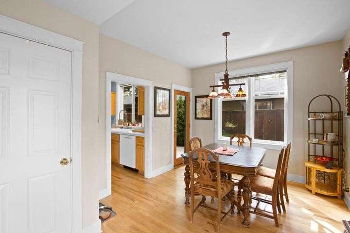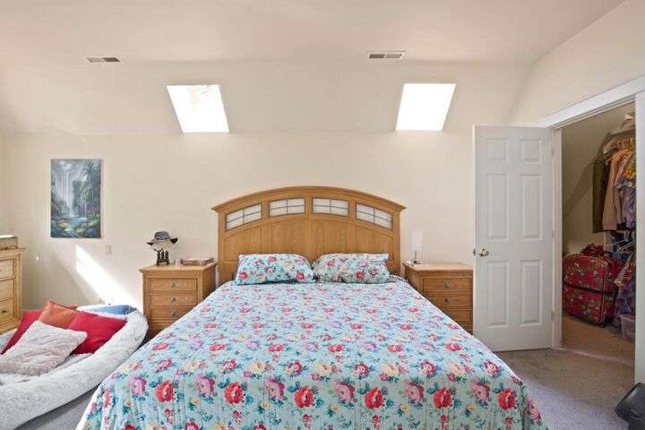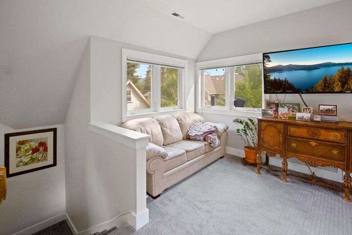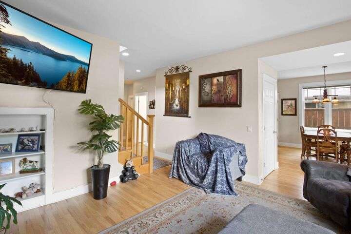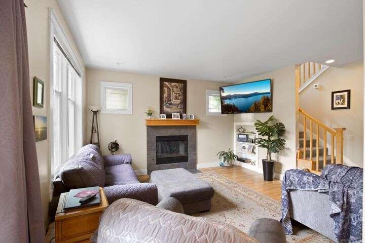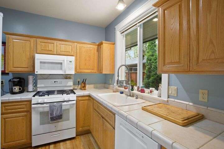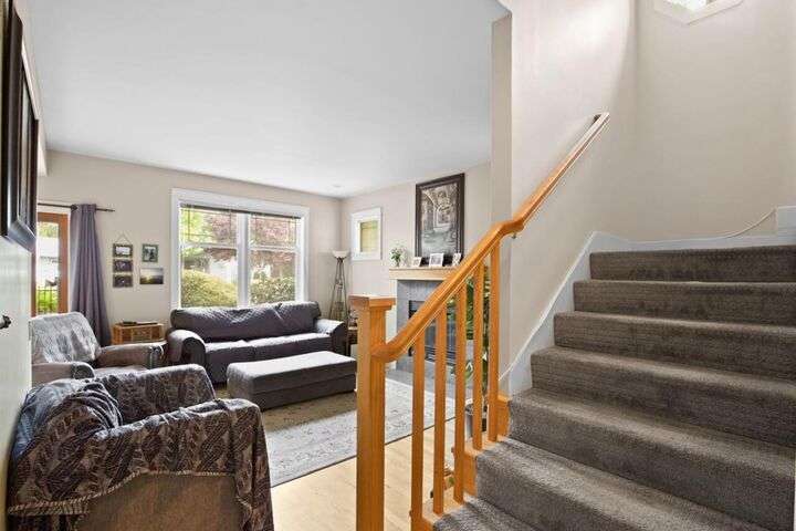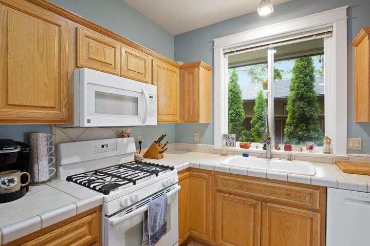 Well-maintained 3-bedroom home built in 2000 with low-maintenance landscaping, drip system, and artificial turf. Interior features include hardwood floors in the main living areas, carpet in bedrooms, cathedral ceilings, skylights, and a gas fireplace. The primary suite spans the upper level and includes a jetted tub, private balcony, and ample natural light. Double-pane windows throughout for energy efficiency. Attached 2-car garage. Fully fenced yard with wrought iron fencing in the front. Fridge and BBQ (plumbed for natural gas) are included in sale. Located near Wagner Meadows trail and one block from Westholm Park with sports courts and playground.