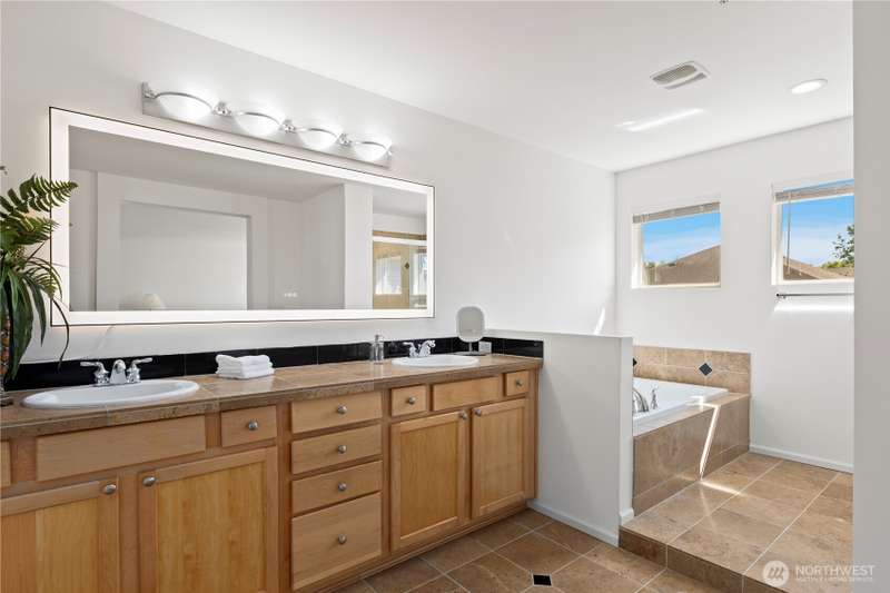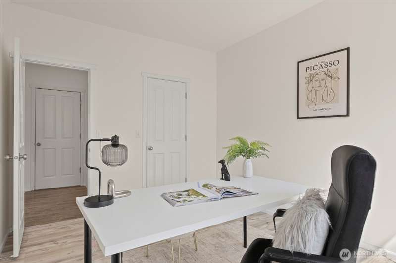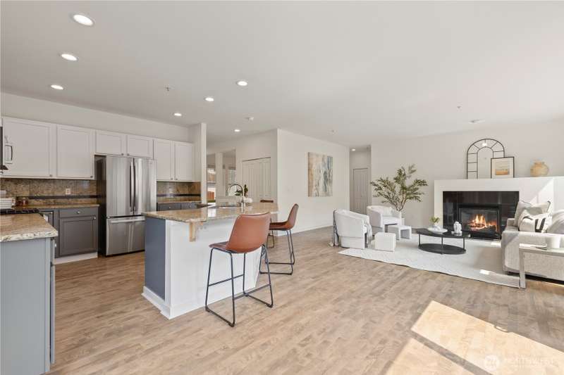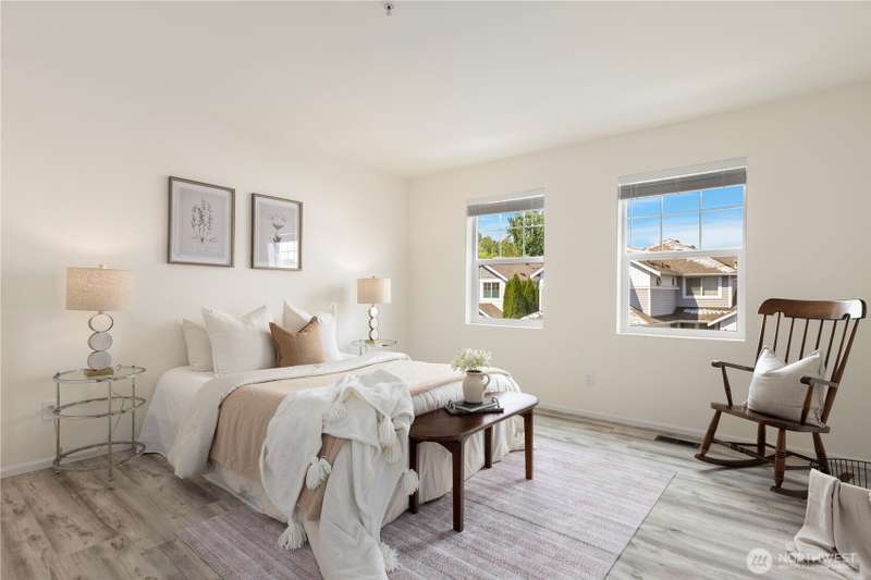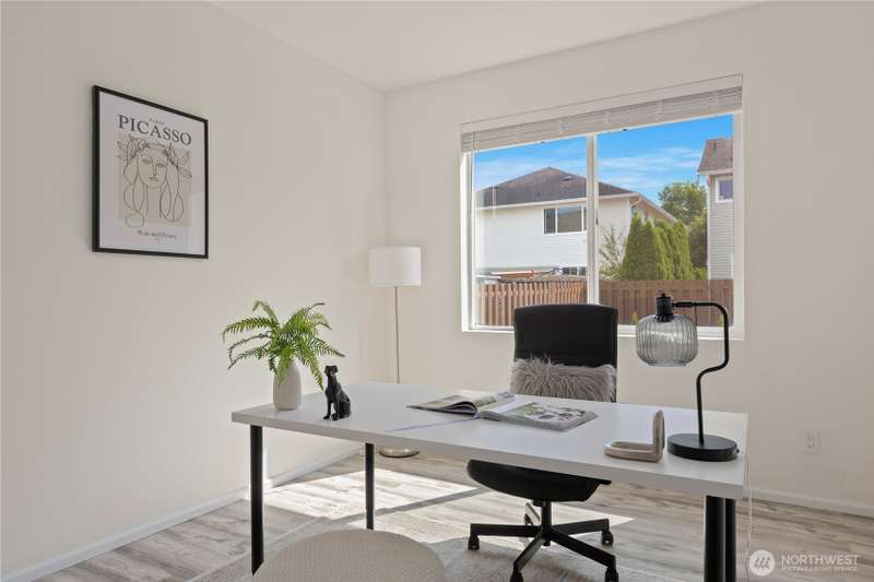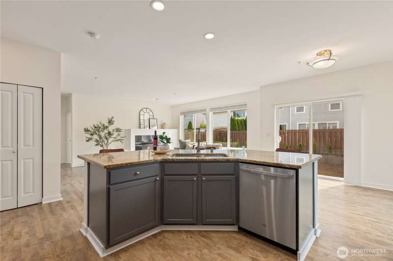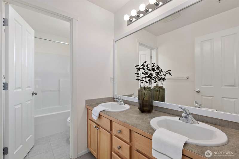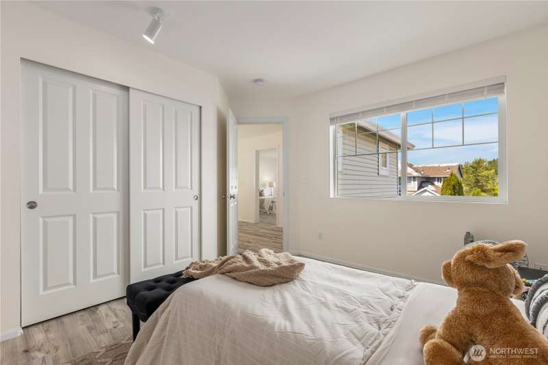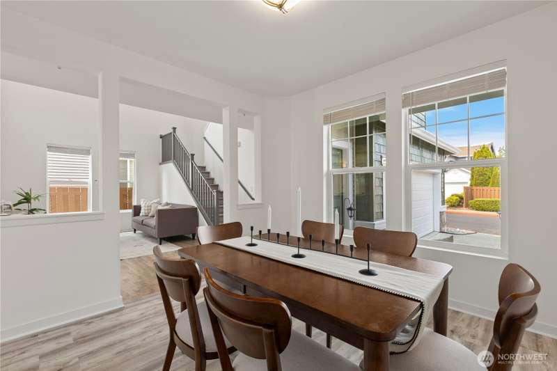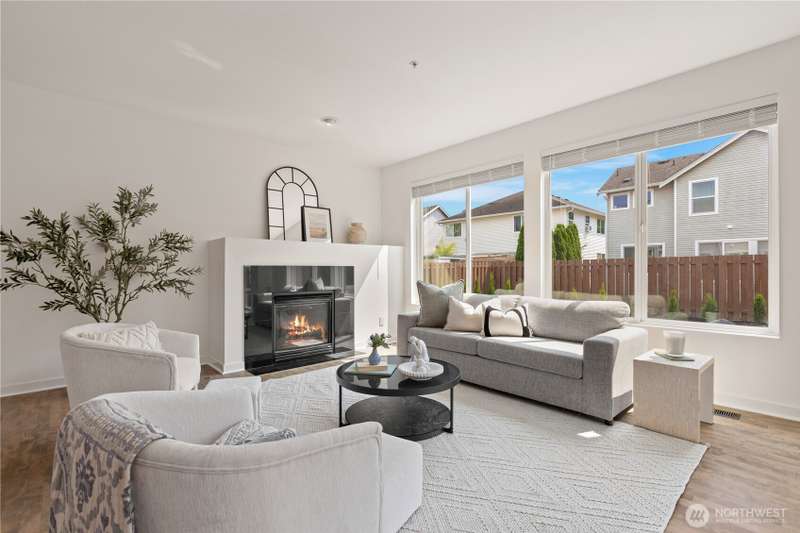 Welcome Home! Spacious 5 bedroom with 2.75 bathrooms and 3 car garage in Parks at Kent! Owner has taken meticulous care of this ready to move in property. Beautifully updated, featuring vaulted ceilings, brand new LVP flooring, freshly painted garage doors & new interior paint throughout. Enjoy cooking in the updated island kitchen with new appliances including gas range & refinished cabinets. This home offers ample space for living and entertaining. Smartly planned layout includes a main floor bedroom & 3/4 bath. New blinds, millwork, backyard fence and much more. Located in a desirable neighborhood with convenient access to schools, parks, trails, freeway access, shopping & more. Don't miss this one!