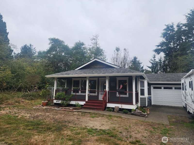 Take a look at this 2-bedroom charmer on a very desirable corner lot. This home has a large open concept living room with dining area to go with a spacious kitchen. Go down the hallway to the 2-bedrooms, bathroom and laundry area. Take a look in the oversized garage area with plenty of built in shelves. Enjoy the fully fenced backyard area with deck and patio along with a large shed and apple tree. While here take advantage of everything Ocean Shores has to offer including fishing, clamming, bowling, movie theatre, community club or kayak the over 23 miles of freshwater canals just to name a few things.