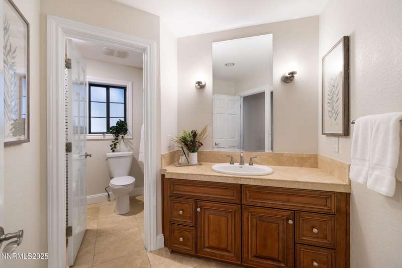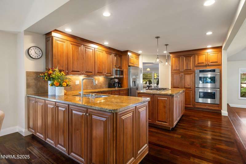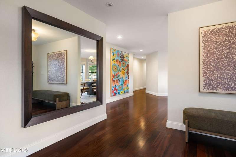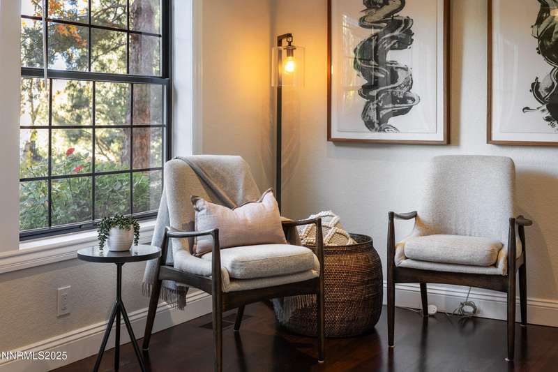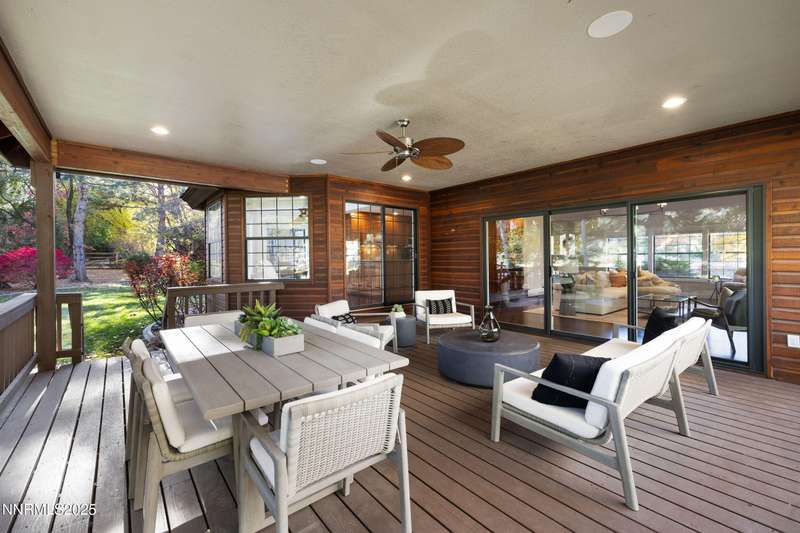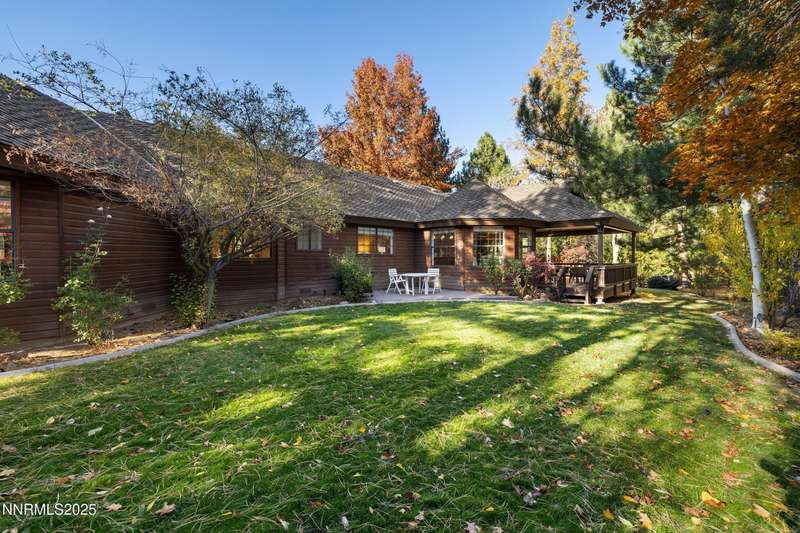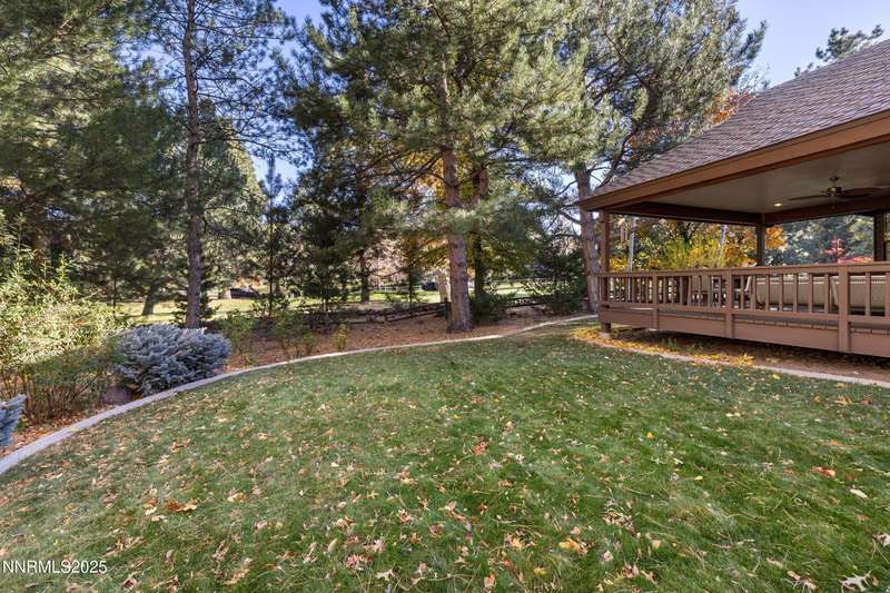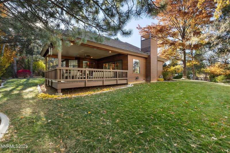 Set at the end of a quiet cul-de-sac in the desirable Juniper Trails neighborhood of Caughlin Ranch, this single-story custom home offers refined living in a serene, nature-immersed setting. Artfully designed, the residence spans a lush, half-acre of mature landscaping with direct access to Caughlin Ranch's 24-miles of scenic trails. Immaculate and move-in ready, this cherished home has been thoughtfully refreshed with bright, open spaces and a seamless blend of indoor-outdoor living. Step inside to a truly welcoming space where natural light floods through expansive windows, drawing the lush, park-like surroundings into every room. Versatile gathering spaces abound, from a cozy kitchen nook perfect for casual meals, to a dedicated formal dining room for every special occasion. The spacious great room flows effortlessly to a covered patio—ideal for entertaining guests or simply savoring the seasons and listening to the nearby creek. The smart floor plan extends to a generous primary bedroom suite featuring separate his and her closets, a deep soaking tub, and a dedicated steam shower for a spa-like retreat. The two guest bedroom suites offer flexible spaces, easily tailored for family, an office, or separate living. Unmatched functionality is provided by the three-car garage, which includes a bay converted into a heated gym space for year-round workouts, as well as ample attic storage. Livable, luxurious, and serene, this single-story sanctuary is the epitome of enjoyment and enduring value.