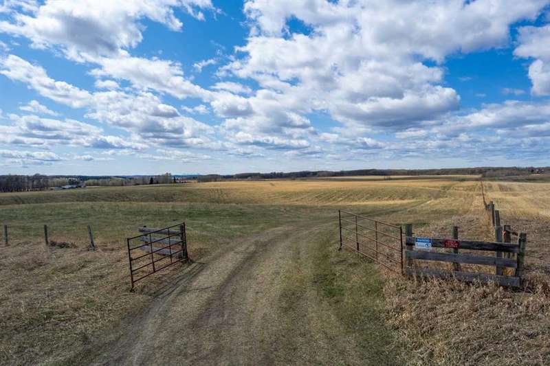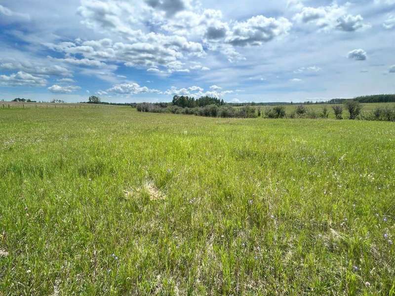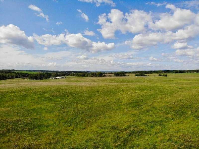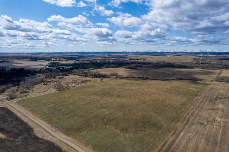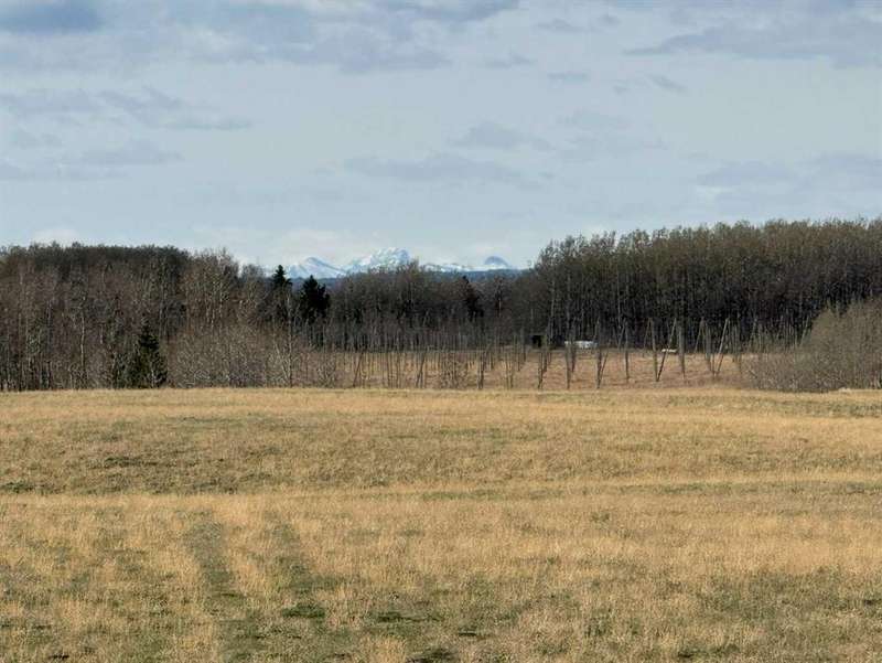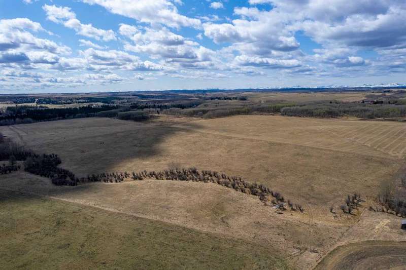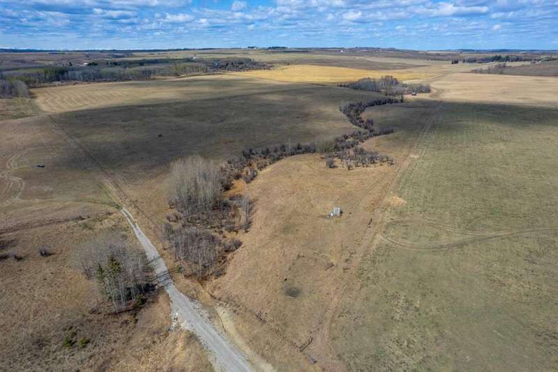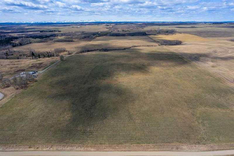 Don't miss this opportunity to own a beautiful piece of land with an amazing well in a great community! This fully fenced 80-acre parcel offers mountain views and total privacy, just 35 minutes from NW Calgary and 30 minutes northeast of Cochrane. Approximately 55 acres were previously seeded to hay, while the balance is cross-fenced and ideal for horse pasture. The land features gently rolling terrain with multiple excellent building sites—many of which are well-suited for a walkout home. A high-producing well is already in place (ran by generator). The west side of the property includes a seasonal creek, attractive rolling topography, and pockets of trees. Power and natural gas are available. Located near the end of a no-thru road. Please do not access the property without permission.