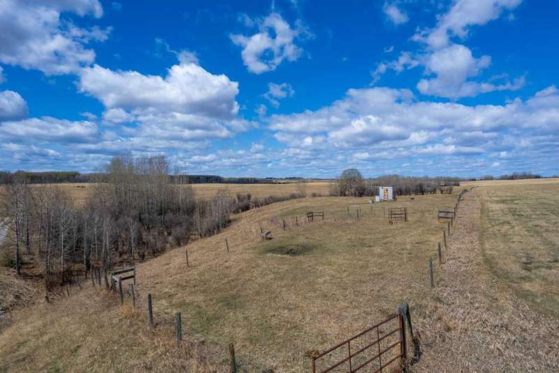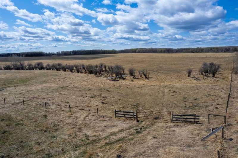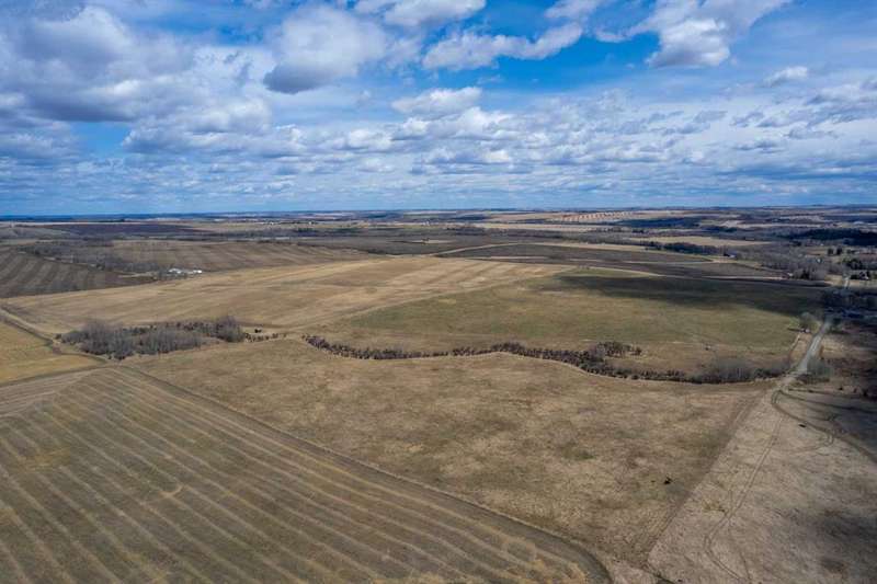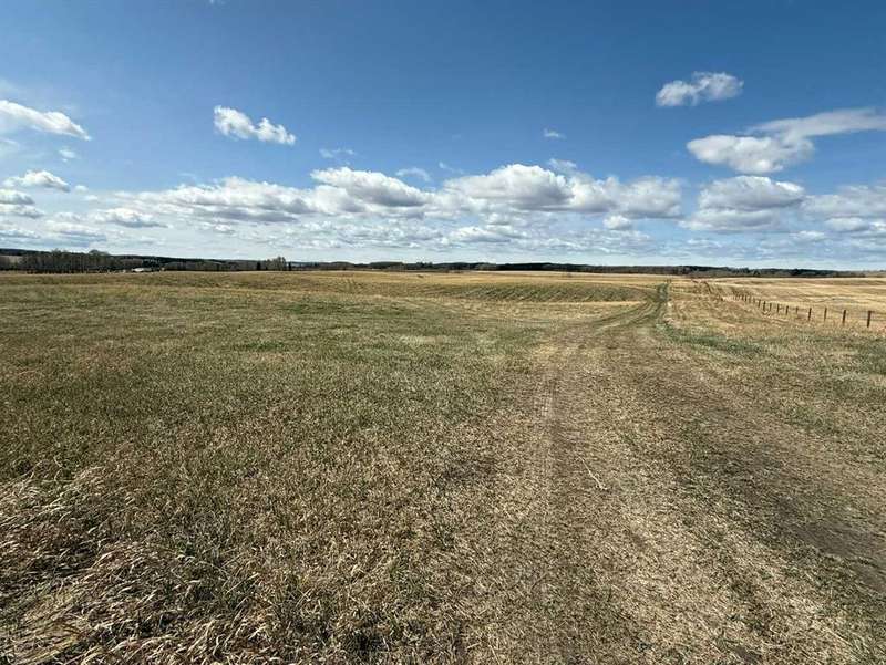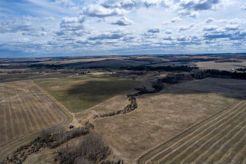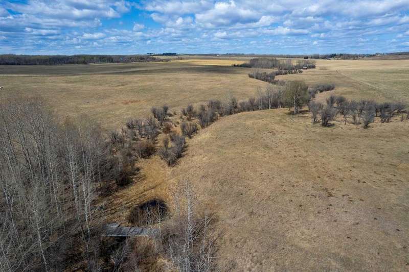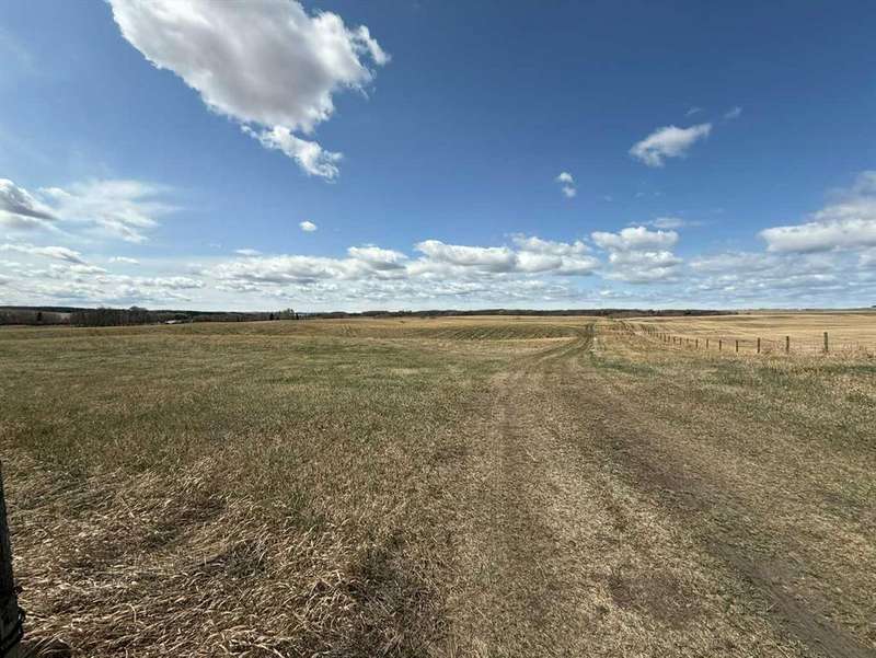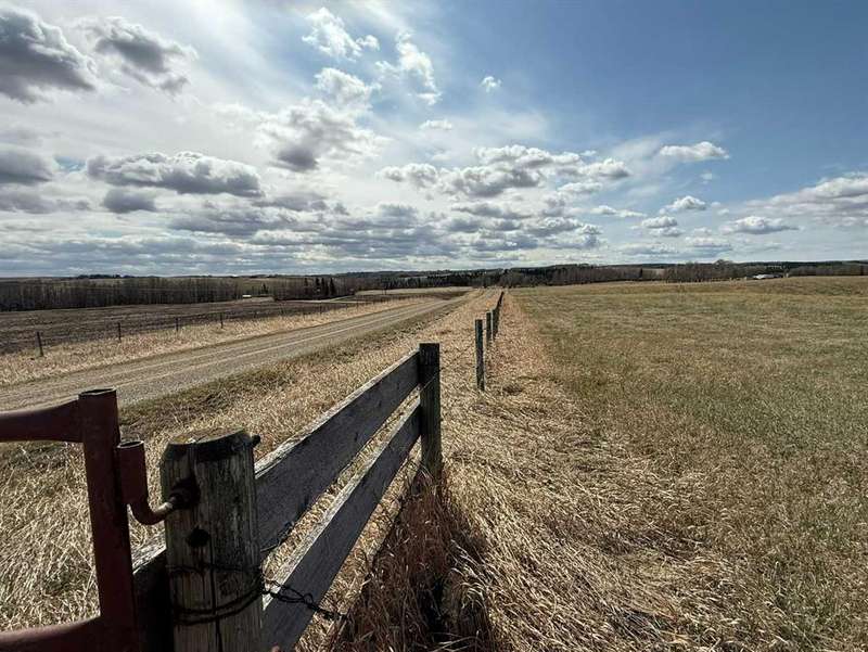 Don't miss this opportunity to own a beautiful piece of land with an amazing well in a great community! This fully fenced 80-acre parcel offers mountain views and total privacy, just 35 minutes from NW Calgary and 30 minutes northeast of Cochrane. Approximately 55 acres were previously seeded to hay, while the balance is cross-fenced and ideal for horse pasture. The land features gently rolling terrain with multiple excellent building sites—many of which are well-suited for a walkout home. A high-producing well is already in place (ran by generator). The west side of the property includes a seasonal creek, attractive rolling topography, and pockets of trees. Power and natural gas are available. Located near the end of a no-thru road. Please do not access the property without permission.