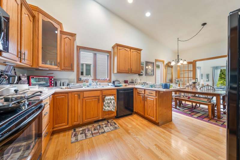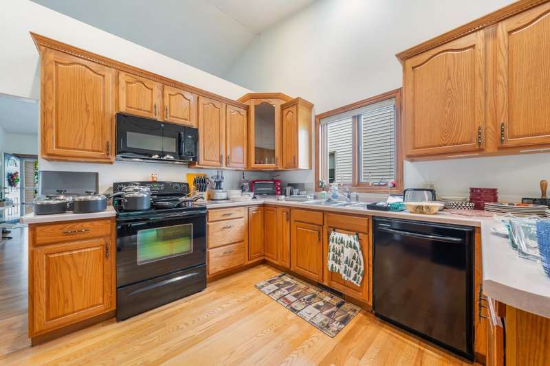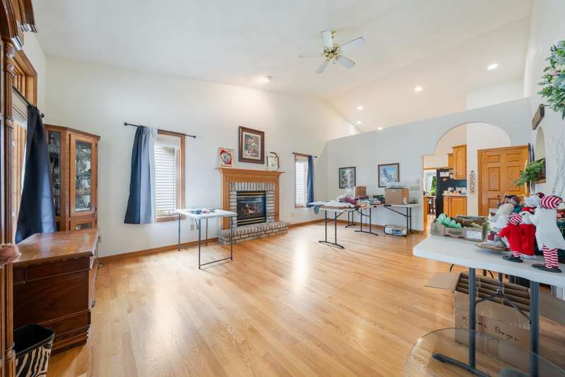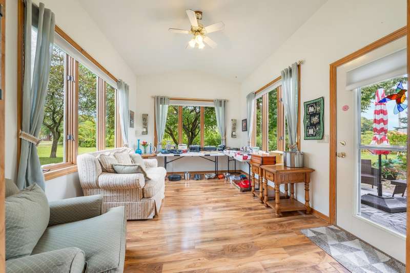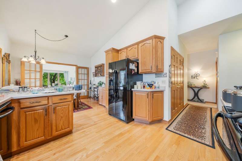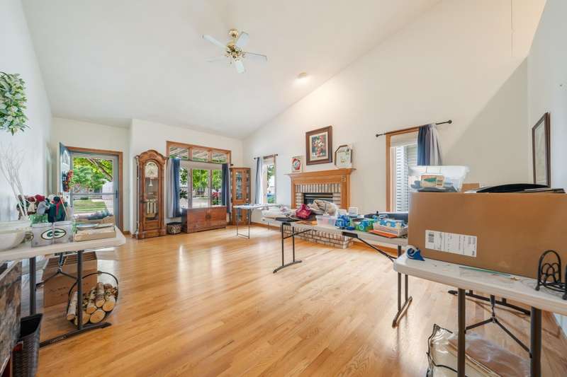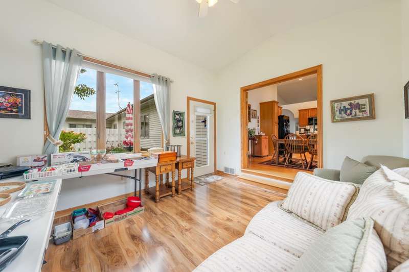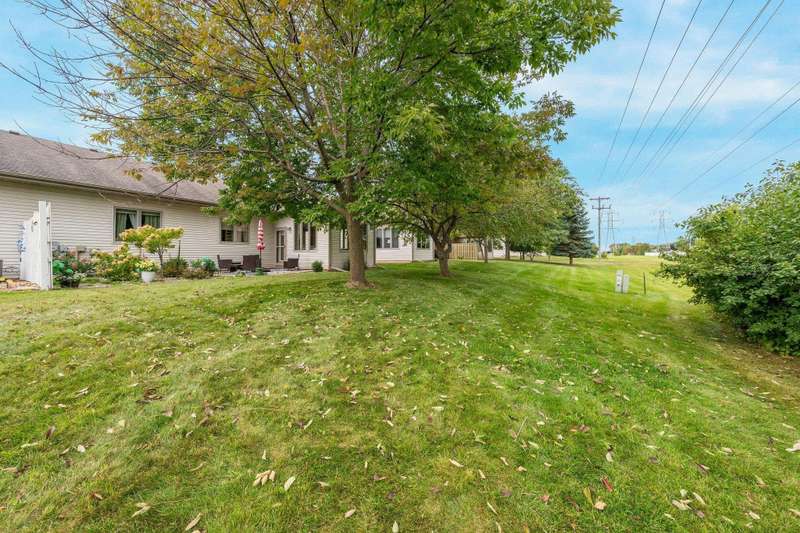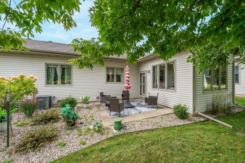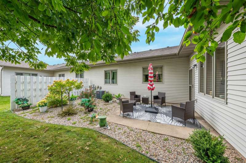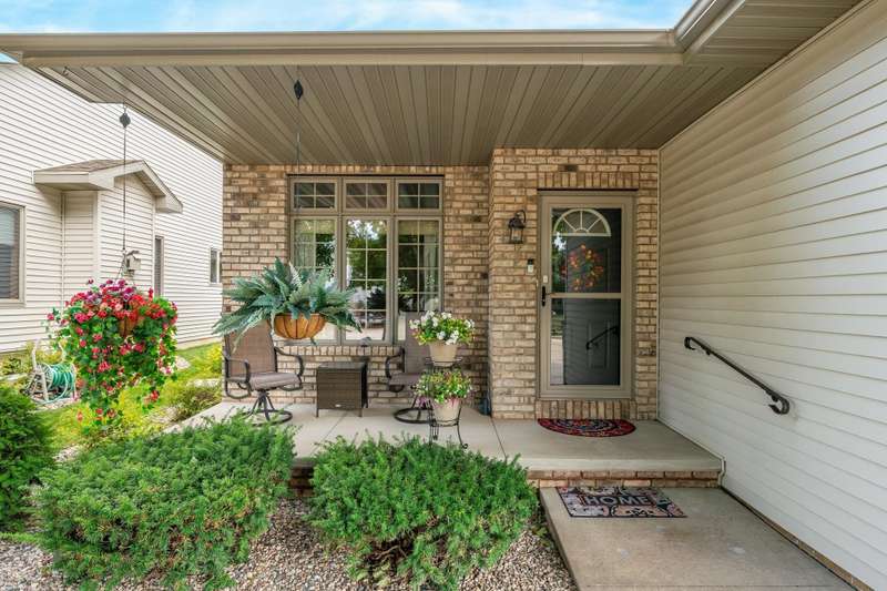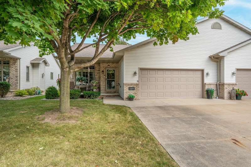 This stylish and spacious 1-story condo blends comfort and convenience with a warm, welcoming feel. A brick exterior and covered front porch set the tone, while inside you find an airy layout with vaulted ceilings, a gas fireplace, and rich hardwood floors. The kitchen is a standout with abundant cabinet space, countertops, and an open dining area that flows into a sun-filled four-season room ideal for relaxing or entertaining. The generous primary suite offers plenty of space, while the attached walk in closet and primary bath make for easy living. The unfinished lower level is perfect for adding additional living space, and the attached insulated garage makes for easy entry. Outside you'll find beautifully maintained outdoor spaces and mature shade trees, come see today!