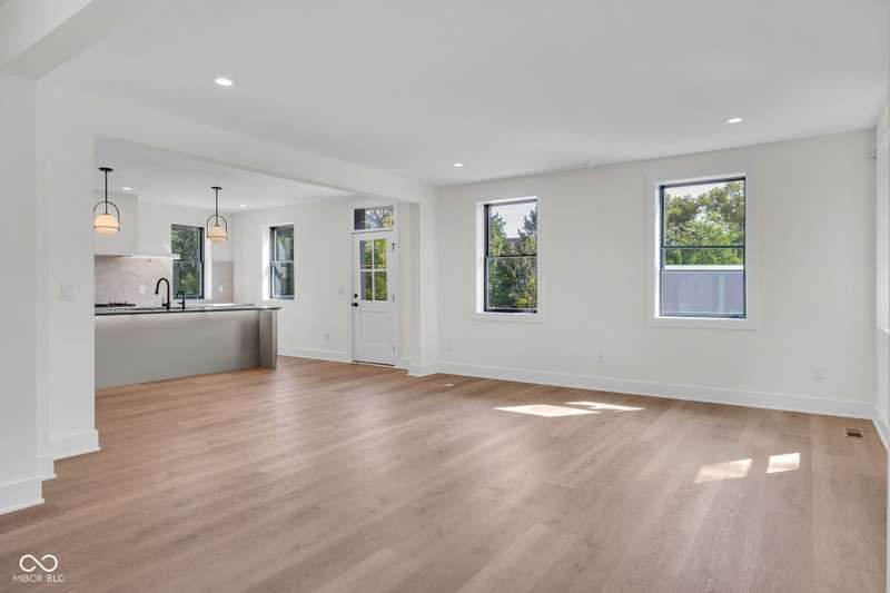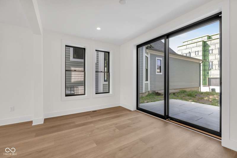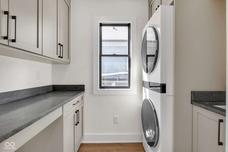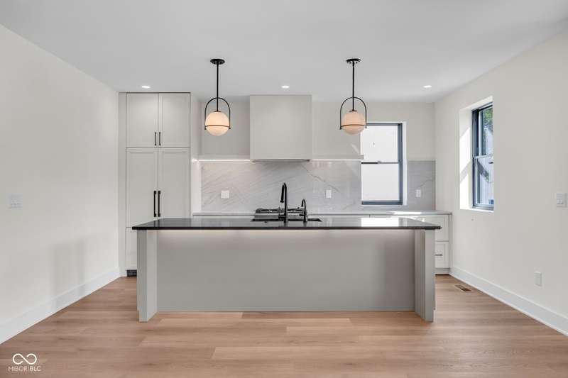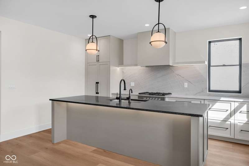 Be among the first to call The Reflection by ReDevelopment Group your home. Located steps from Lilly, Lucas Oil Stadium, Shapiro's, Iozzo's, and Greek Islands, this fully gutted and renovated residence blends modern living with an unbeatable downtown location. The open kitchen, dining, and living areas connect seamlessly to a private fenced courtyard-an ideal outdoor retreat. A spacious walk-in pantry doubles as a drop zone or coffee bar, keeping clutter neatly tucked away. Additional storage includes a four-cubby drop zone and an attached garage for convenience and an unfinished and fully insulated basement. Wide wood tread stairs draw your eye to city views, including Lucas Oil and Salesforce Tower. Upstairs, you'll find four bedrooms, including a beautiful primary suite with skyline views, a California Closet, a comfort-height dual vanity, and a walk-in shower. The upper level also includes a laundry room with utility sink. Built with excellent insulation, this home is a quiet retreat in the heart of the city, soon to be surrounded by stunning new townhomes )Inquire with agent for more info). Don't miss your chance to be part of this exciting new community!
