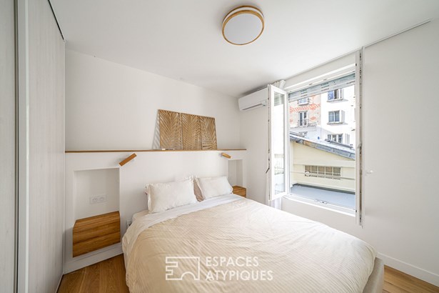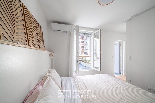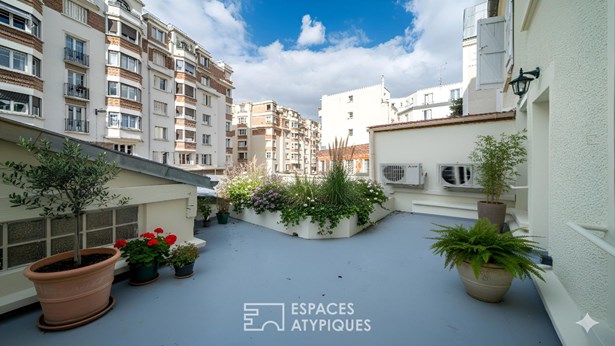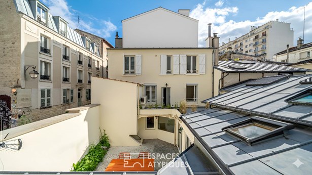 With a floor area of ??140.34 m2, including 132.15 m2 under the Carrez law and a 28 m2 paved courtyard, this unique space offers a true village house feel in Paris.