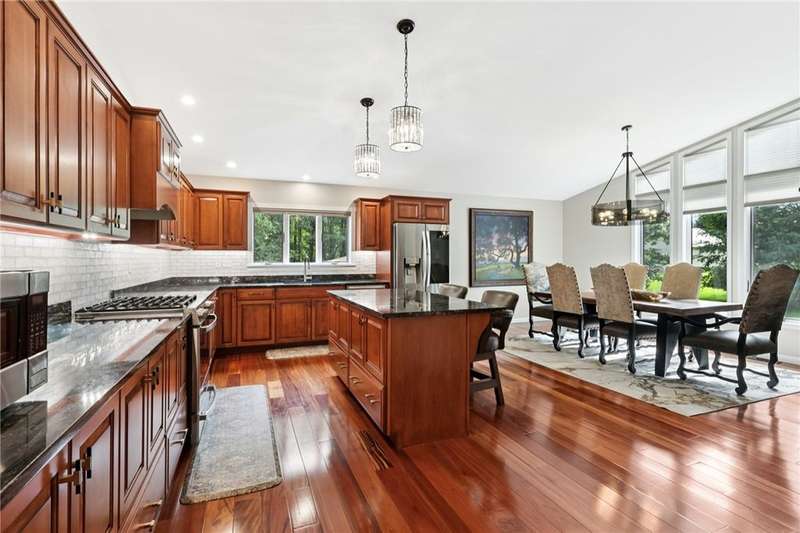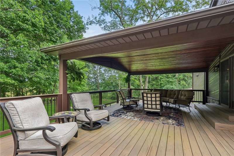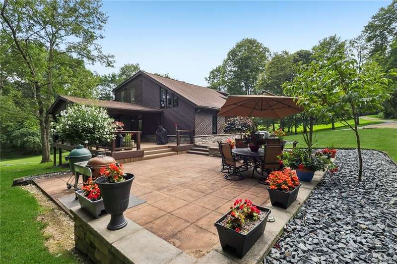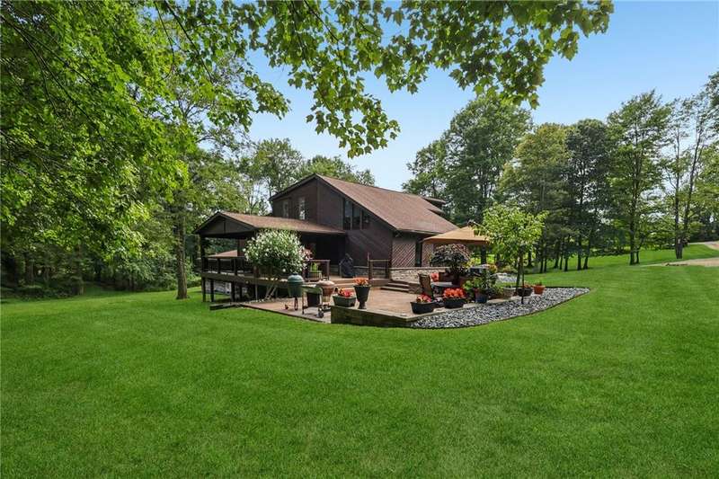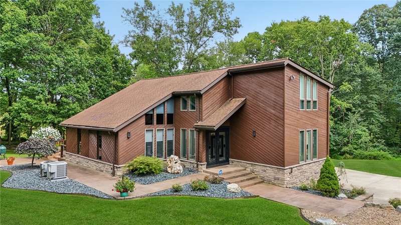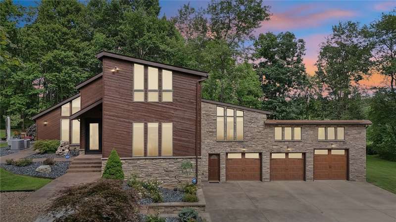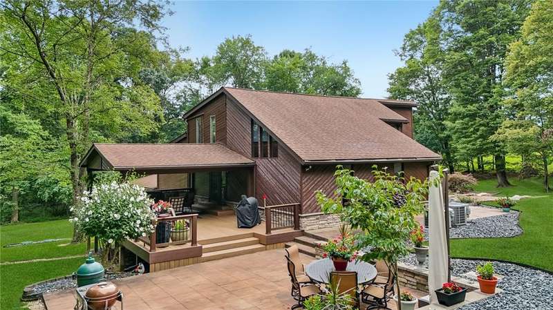 Rare opportunity returns. Luxury & privacy. Contemporary, 3-4 bed, 3 full bath home is tucked away in a quiet setting. Natural lighting highlights recent high-end upgrades at every turn in the spacious, open interior. With 2 master suites (each w/luxurious ensuite), upscale finishes throughout, thoughtfully designed covered deck & patio, on nearly 2 acres, it's a lifestyle that awaits you.Carefully curated landscaping & designer door greet you. The kitchen w/abundant countertops & high-end appliances opens to formal dining creating an incredible space to entertain or enjoy quiet dinners with a stunning view. New luxury carpet & custom Graber honeycomb shades provide functionality & elegance. Each master suite w/their spa-like ensuites showcase a mix of premium glass tile, porcelain flooring & Quartzite countertops. Includes a 3-car oversized garage w/ample storage, & whole house generator.Refined living & rural tranquility, just a short drive to Pittsburgh & Murrysville.