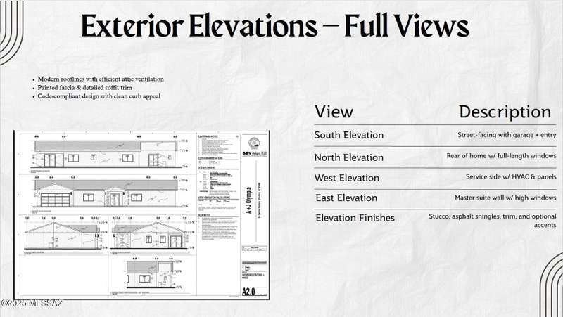Welcome to 24 Camino Olympia - a brand-new 4-bedroom, 2-bath home offering sweeping mountain views, modern design, and the freedom of over 1.45 acres in beautiful Rio Rico.This thoughtfully crafted 1,844 sq ft residence features a bright, open-concept layout with a spacious island kitchen that seamlessly connects the living and dining areas -- perfect for everyday living and entertaining alike. The split-bedroom floor plan offers privacy for the primary suite, while providing flexible space for guests, a home office, or a multigenerational setup.Built with quality and comfort in mind, the home rests on a solid slab foundation and is outfitted with energy-efficient HVAC, stylish modern finishes, and durable construction ready to stand the test of time.