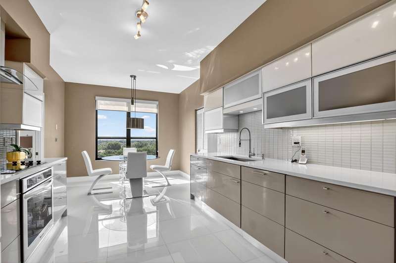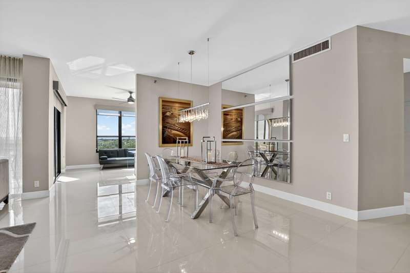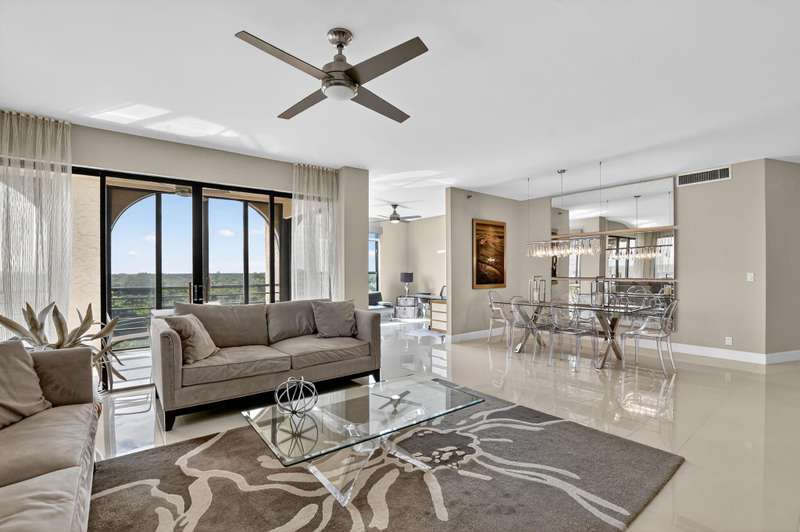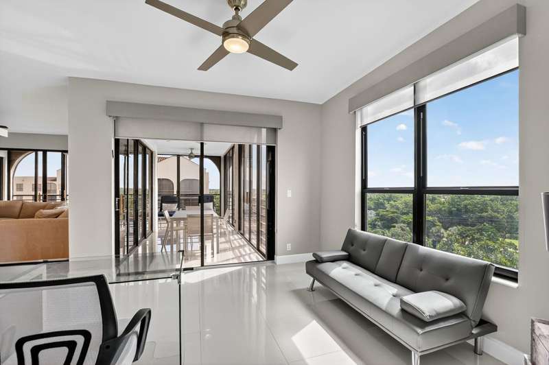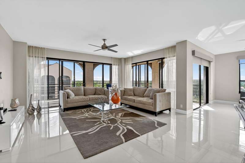 Stunning designer-furnished penthouse rental! Available for winter seasonal or annual rental. Expansive views from this high floor condo. 2-bedroom plus den residence featuring a huge wrap-around patio that expands your living space. High-end kitchen with top-of-the-line finishes and modern, sleek furniture throughout. The primary bedroom offers a king-size bed, and the second bedroom includes a queen. Impact glass windows for peace of mind. Other features include separate laundry room, en-suite 2nd bedroom, den with built in office, and so much more!!! Includes one covered parking space. Enjoy the community pool and small clubhouse. Don't miss this exceptional property!