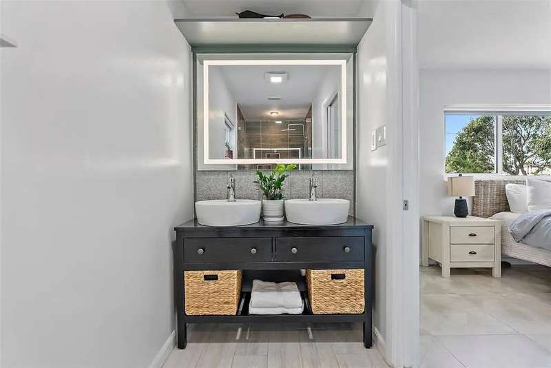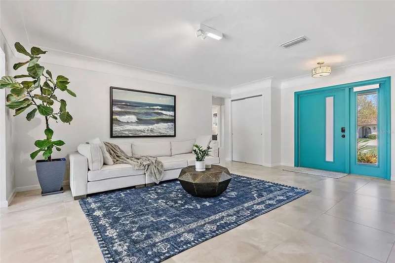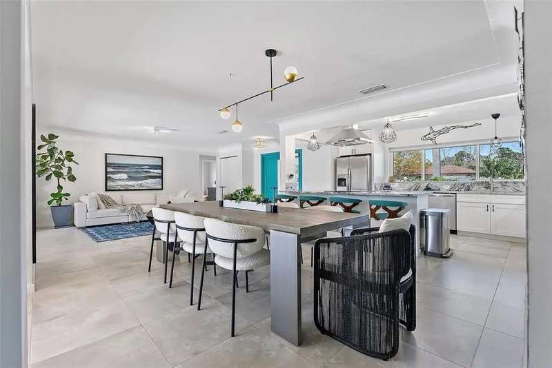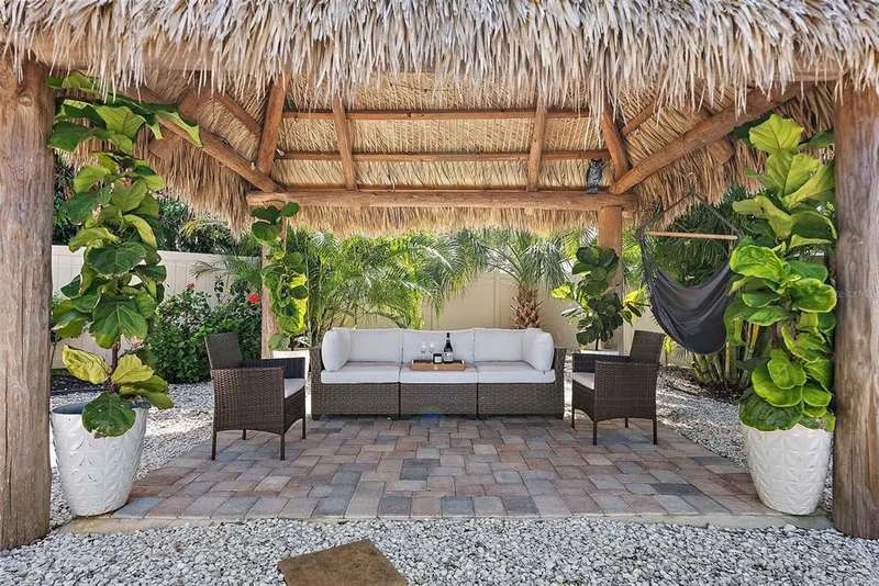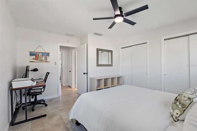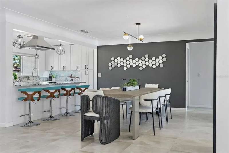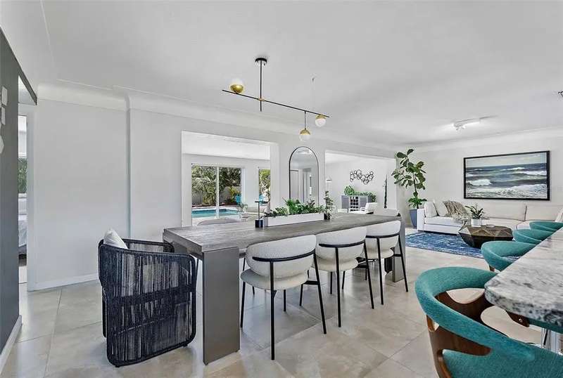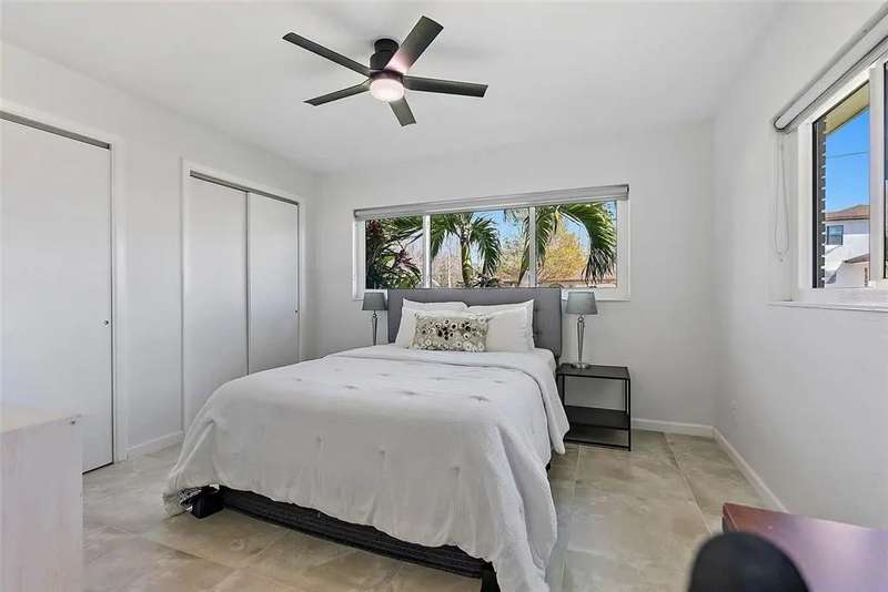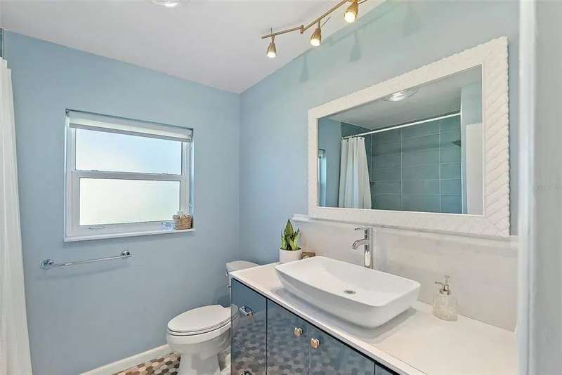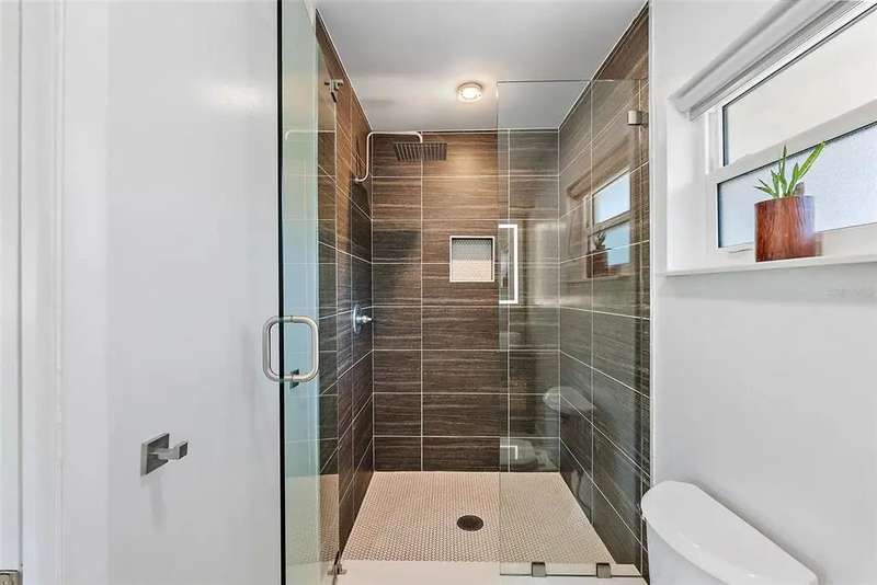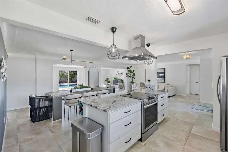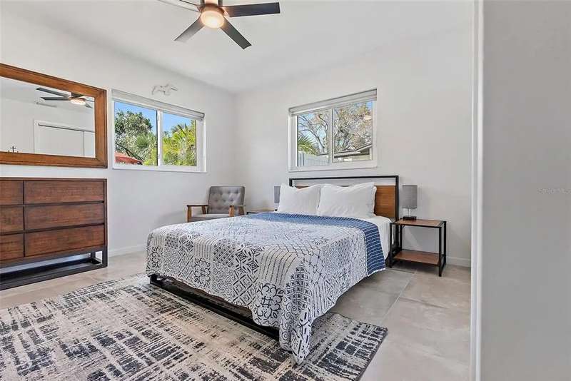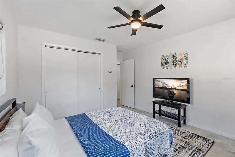 Nestled in the beautiful Broadwater neighborhood of St. Petersburg, this stunning 3-bedroom, 2-bathroom pool home offers the ultimate Florida lifestyle. Located just 10 minutes from world-class beaches and the vibrant energy of downtown St. Pete, this property is a true gem. This home has been thoughtfully renovated to blend modern comforts with effortless, low-maintenance living. Step inside to an open-concept floor plan with beautiful, large-profile tile flooring throughout. The gourmet kitchen is a chef's delight, featuring real wood, soft-close cabinets, stainless steel appliances, a fully-ventilated range hood, and granite countertops. The inviting primary bedroom is a serene retreat with a lovely en-suite bathroom, dual sinks, and a beautifully tiled oversized shower. It also boasts two custom closets, one designed for the shoe lover in all of us. The two additional bedrooms are spacious and versatile, perfect for guests, a home office, or a playroom. The bright and stylish second bathroom offers a modern and clean aesthetic with a generous-sized vanity and a bath tub. Custom window coverings throughout the home provide both privacy and a touch of modern elegance. Step outside to your private backyard tropical paradise, a perfect setting for entertaining or relaxation. The expansive yard features a wifi-controlled heated saltwater pool, a charming Tiki Hut, fruit trees, a paver patio, and a new artificial turf lounge area. Dual SunSetter outdoor shades offer the flexibility to create a shaded outdoor space or reduce sun exposure inside the home. The yard is designed for minimal upkeep with wifi-controlled irrigation, heavy-duty weed barrier, and white shell landscaping. The entire backyard is fenced with a double gate on one side to allow you to easily store your boat or RV in the side yard. This home is packed with recent updates for energy efficiency and peace of mind: solar-powered attic fans and blown-in insulation (2024); an electrical panel upgrade with a generator transfer switch connection (2023), new roof with hurricane straps (2021); brand-new HVAC system with ductwork, a new water heater, and high-end PGT hurricane impact windows and sliders (2019). With its prime location, modern upgrades, and inviting outdoor spaces, this is the perfect place to call home. No flooding, water intrusion, or storm-related damage occurred during the historic and active 2024 hurricane season. For VA-qualified buyers, there's an option for a VA loan assumption at an attractive 5.5% interest rate.