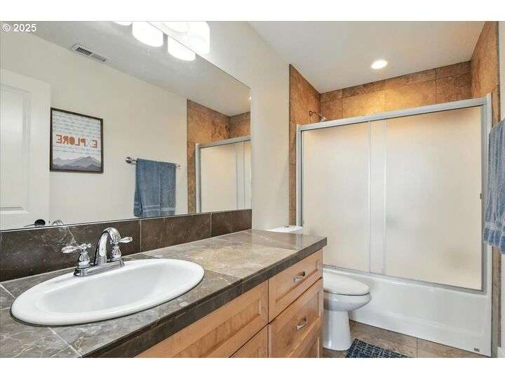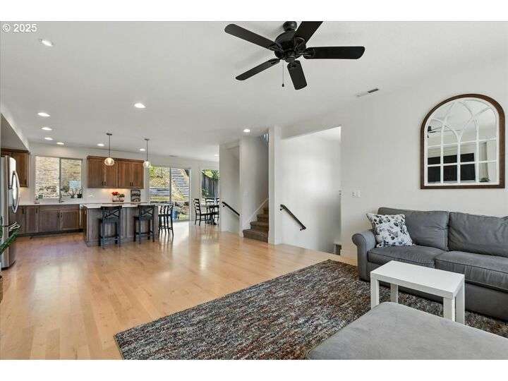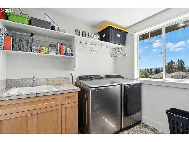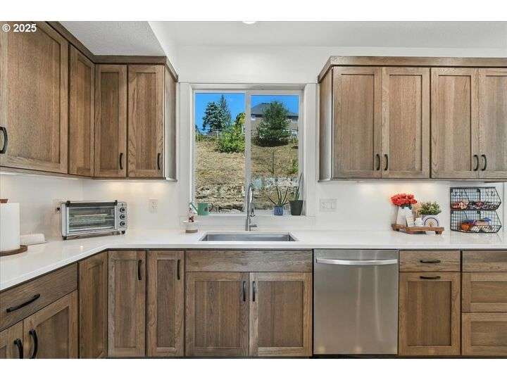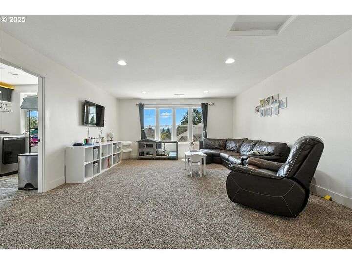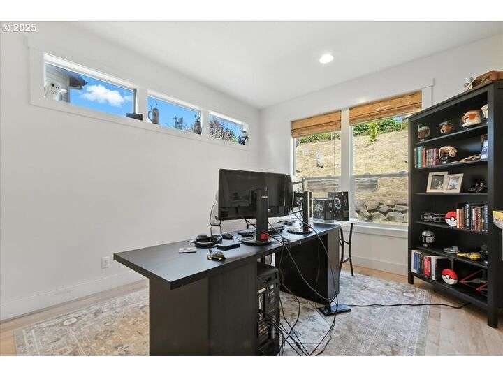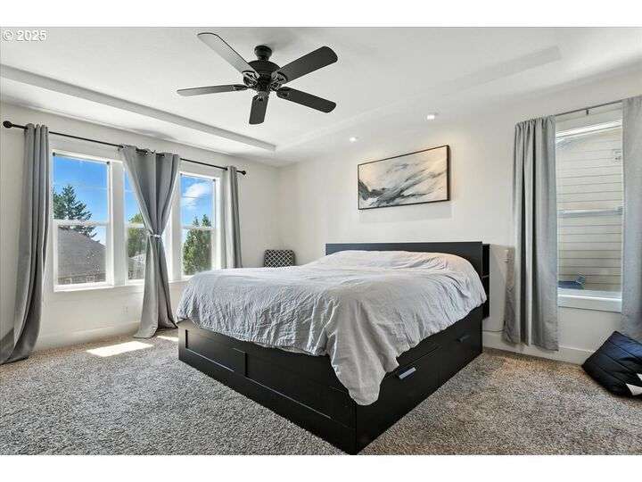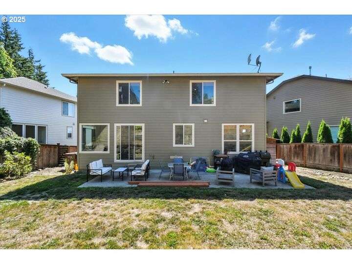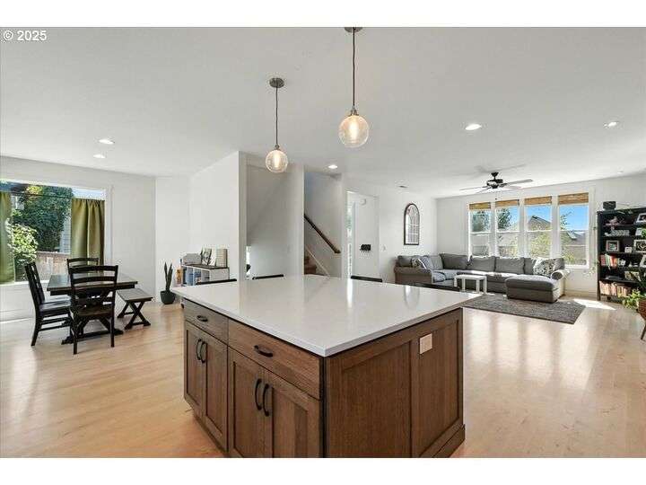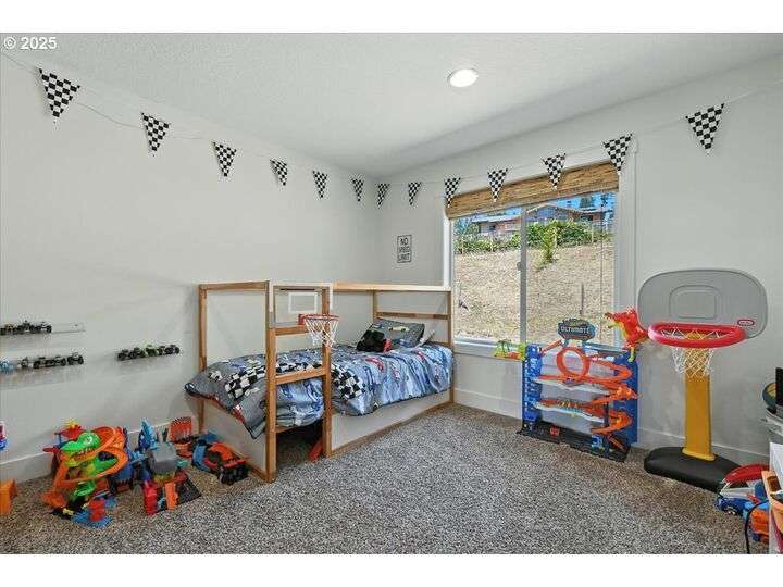 This stunning 5-bedroom, 3-bathroom home offers both comfort and style, complete with an oversized 4-car garage. Maple hardwood floors flow throughout the great room, where a cozy gas fireplace frames sweeping territorial views. The kitchen shines with quartz countertops, hickory cabinetry, and a spacious island, opening to a bright and airy dining area. Two main-floor bedrooms and a full, main-floor bathroom provide convenience and flexibility. Upstairs, a generous loft/bonus room showcases panoramic views, while the primary suite offers a private retreat with a soaking tub, dual sinks, and a walk-in closet. Two good sized bedrooms, a full bathroom and a convenient laundry room complete the upstairs. Oversized 4-car garage with storage area and utility sink. Large fenced backyard with a patio perfect for relaxing. To top it all off, don't miss the clubhouse featuring an indoor pool, sauna, fitness center, and party room, or the neighborhood trails and play areas.