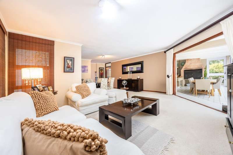 JOINT MANDATE A charming single-level home, perfectly situated in Welgedacht Estate on a quiet street, one house away from a park and green belt. It was designed to optimize flow and make entertaining seamless with a huge braai room, interleading to three reception areas that in turn connect with the open plan kitchen. Stacking doors leading outside. The leafy garden is pretty, private, and well-established with a swimming pool. There are four bedrooms with the main bedroom and the guest bedroom both en-suite. The additional 2 bedrooms share a full bathroom. In addition, there is an automated double garage and off-street parking for 3 cars. Call to make an appointment to view this delightful property.