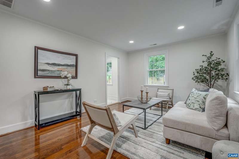 Wow! Completely renovated inside with new modern HVAC, new Tankless Hot Water Heater, new Kitchen, New Bathroom, new windows, new drywall and refinished floors! This charming cottage home tucked off of Rugby Road is surrounded by mature trees, with a newly landscaped and seeded yard. Inside, the cozy living room opens to the remodeled kitchen with quartz countertops, tile backsplash, white cabinets, and stainless steel appliances. Everything is brand new! Two bedrooms share a full hall bathroom with new tiled floor and shower, new plumbing and a high-end washer/dryer combo hidden behind the sliding barn door! A flexible room next to the kitchen can be a home office, dining room or third bedroom. New tankless hot water heater for instant hot water too! Enjoy the beautiful landscaping around the patio at the rear of the home. Don't miss your chance at this city charmer!