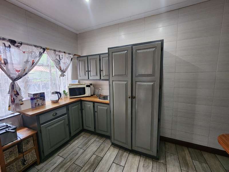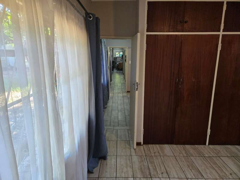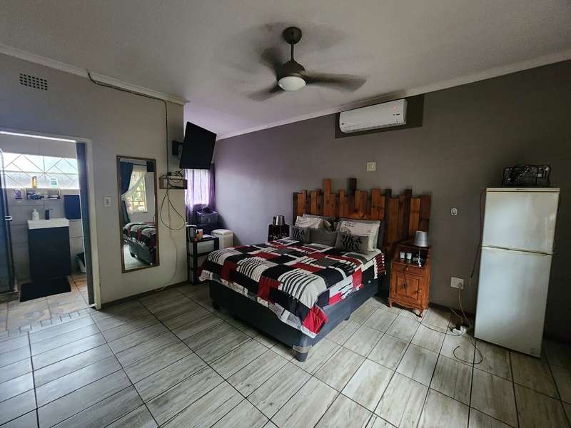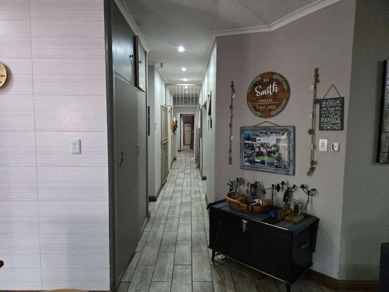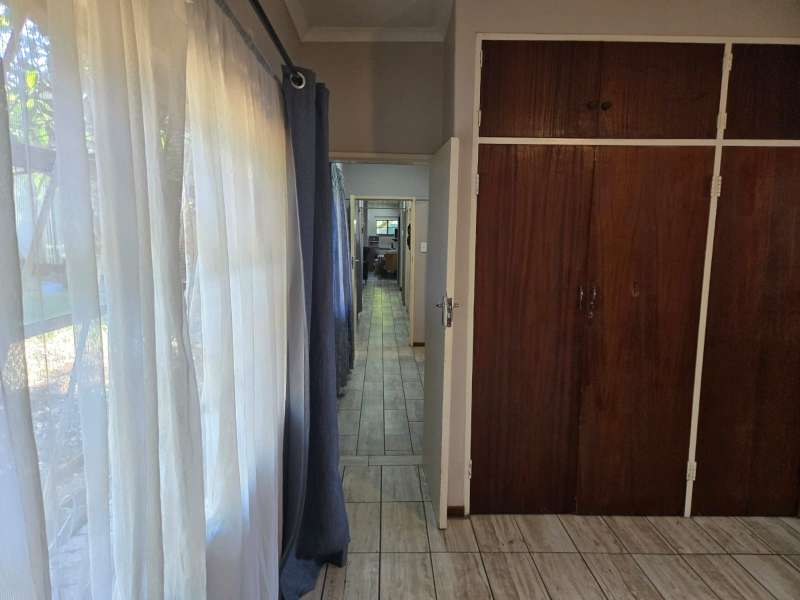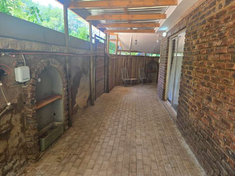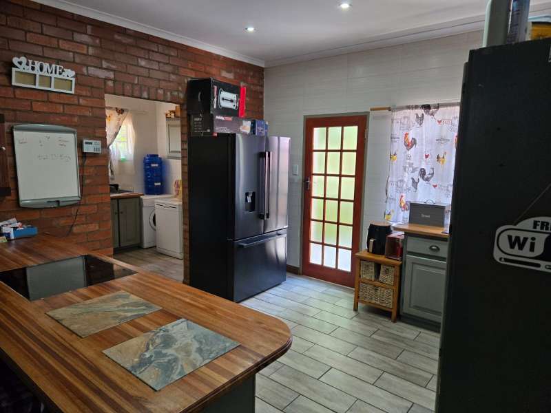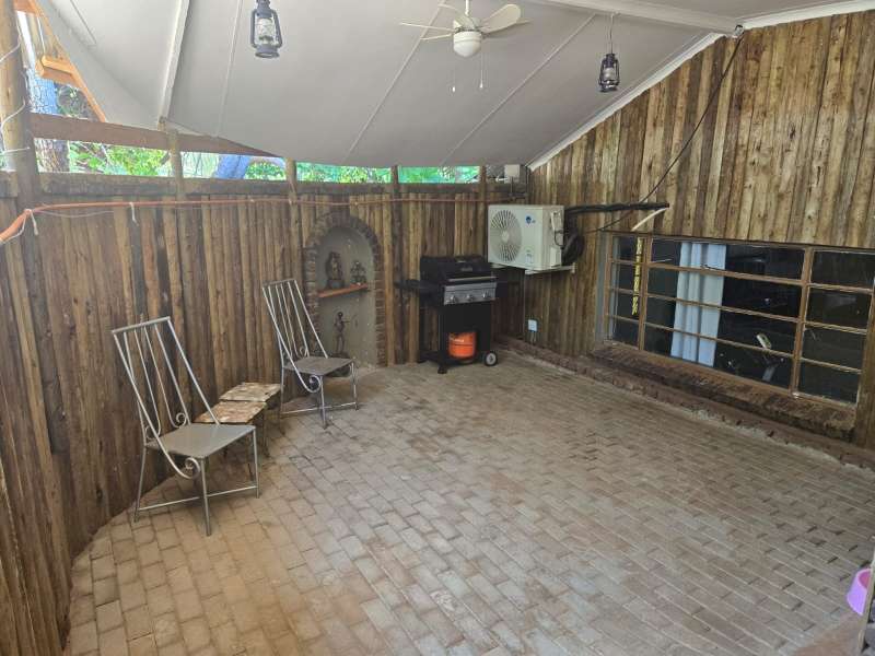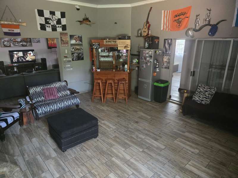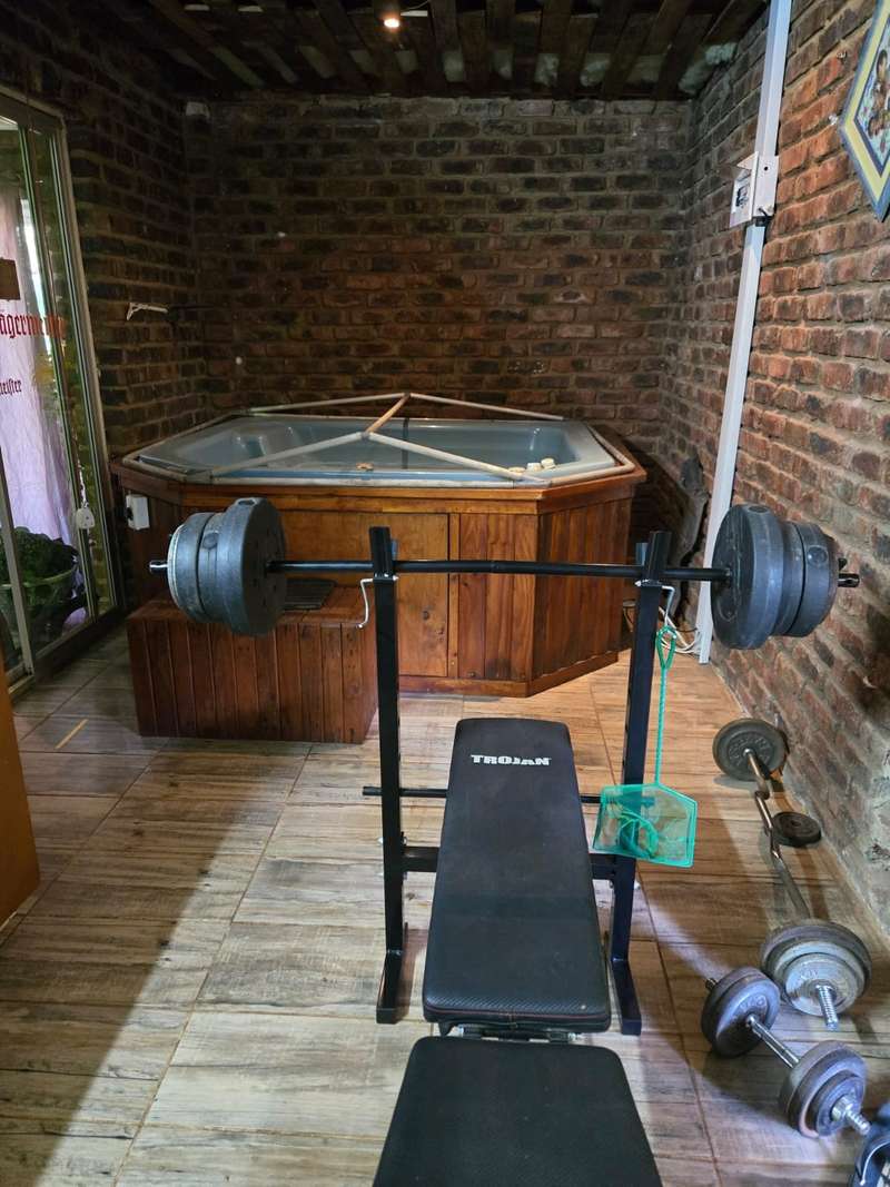 Welcome to this charming 4-bedroom, 2-bathroom home that offers the perfect blend of comfort, modern living, and practicality. With an open-plan kitchen and living room, this home creates a seamless flow for family gatherings and entertaining. The building features a built-in braai area and an additional outdoor braai space, making it ideal for those who love to host. For ultimate relaxation, enjoy the luxury of your very own jacuzzi room, providing a private retreat after a long day. The property is fully equipped with a 40m deep borehole that provides an impressive 10,000 liters per day, ensuring an abundant water supply for your home and garden. Complementing this is a 5,000-liter water tank and pump, along with two additional pumps dedicated to irrigation, ensuring lush greenery all year round. The garage has been cleverly converted into a spacious workshop, ideal for hobbies, DIY projects, or additional storage needs. Plus, the property features a double-car carport, offering ample space for your vehicles. Located just a stone's throw away from Frikkie Meyer High School, this home offers both convenience and comfort, making it perfect for families looking for space, modern living, and sustainability. Don’t miss out on the opportunity to own this exceptional property!