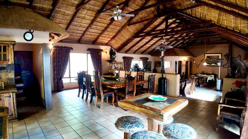 Luxury Game Farm for Sale Topography: 50% flat terrain and 50% mountainous areas Vegetation: Marula, Leadwood, Haak-en-Steek, and a mixture of sweet and sourveld grazing. Accommodation Capacity: Sleeps up to 80 guests Main Lodge Expansive decking area Bar and entertainment area Lounge and fully equipped kitchen Ladies’ and gents’ restrooms Separate 1-bedroom, 1-bathroom unit Conferencing Facilities Fully equipped conference room Office and kiosk area Entertainment area with bar Dining area Ladies’ and gents’ restrooms Recreational & Outdoor Facilities Laundry with linen room Storage rooms Jungle gym and putt-putt course Lapa with boma and braai area Self-catering kitchen and separate ablution block Swimming pool Guest Accommodation 3 x Chalets: 2 bedrooms, 1 bathroom, open-plan kitchen, dining, and lounge 5 x Chalets: 1 bedroom, en-suite bathroom 6 x Tent chalets with bathrooms Flat: 2 bedrooms, 1 bathroom, open-plan kitchen and lounge House: 2-bedroom with 1½ bathrooms, kitchen with laundry, open-plan lounge and dining area Additional Buildings Manager’s house Hunter’s house Shed and slaughtering facilities with cold room 10 workers’ accommodation units Farm Infrastructure 3 x Cattle kraals with handling facilities 8 x Grazing camps with water access 5 x Boreholes with strong water supply (Eskom, generator, and submersible pump) 2 x Eskom power points Seasonal pan Game Species on Farm: Kudu Impala Blue Wildebeest Sable Nyala Zebra Ribbok Luukse Wildsplaas te Koop Topografie: 50% gelyk terrein en 50% bergagtige gebiede Plantegroei: Maroela, Hardekool, Haak-en-Steek, en ’n mengsel van soet- en suurveld weiding Akkommodasie Kapasiteit: Bied slaapplek aan tot 80 gaste Hooflodge Uitgestrekte dekarea Kroeg en vermaaklikheidsarea Sitkamer en volledig toegeruste kombuis Dames- en mansgeriewe Afsonderlike 1-slaapkamer, 1-badkamer eenheid Konferensiegeriewe Volledig toegeruste konferensiekamer Kantoor en kioskarea Vermaaklikheidsarea met kroeg Eetarea Dames- en mansgeriewe Rekreasie- en Buiteluggeriewe Wasgoedkamer met linnekamer Stoorkamers Speelgrond en minigolfbaan Lapa met boma en braai-area Selfsorgkombuis en afsonderlike ablusieblok Swembad Gaste Akkommodasie 3 x Chalets: 2 slaapkamers, 1 badkamer, oopplan kombuis, eet- en sitarea 5 x Chalets: 1 slaapkamer, en suite-badkamer 6 x Tent-chalets met badkamers Woonstel: 2 slaapkamers, 1 badkamer, oopplan kombuis en sitkamer Huis: 2 slaapkamers, 1½ badkamers, kombuis met wasgoedkamer, oopplan sit- en eetarea Addisionele Geboue Bestuurder huis Jagtershuis Skuur en slaggeriewe met koelkamer 10 werkerswoonstelle Plaasinfrastruktuur 3 x Beeskrale met hanteringsfasiliteite 8 x Weidingskampe met water 5 x Boorgate met sterk water (Eskom, kragopwekker en dompelpomp) 2 x Eskom kragpunte Seisoenale pan Wild op die Plaas: Koedoe Rooibok Blou Wildebees Sable Njala Sebra Ribbok