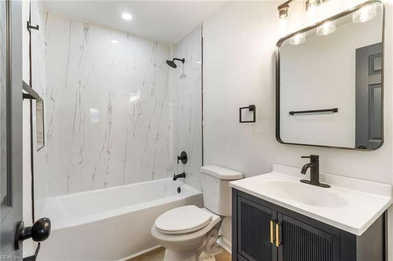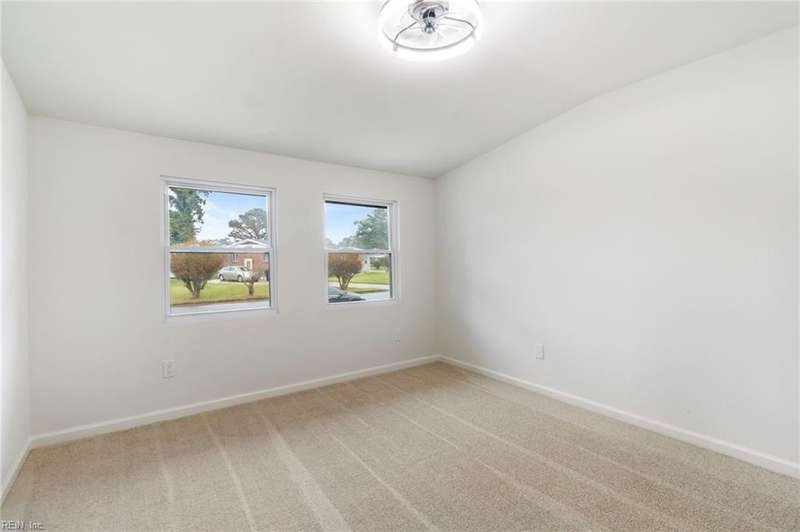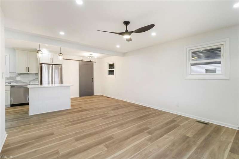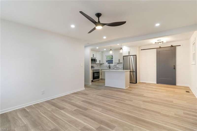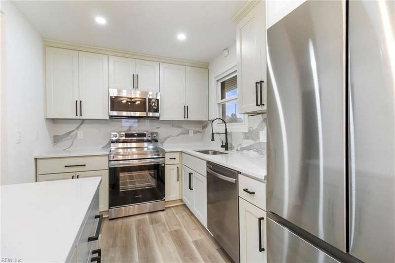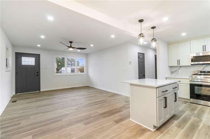 Welcome to this fully remodeled 4BR, 2 BA Ranch in the sought-after Cavalier Manor area of Portsmouth! This home offers a bright open layout connecting the living room and kitchen, featuring quartz countertops, a porcelain backsplash, and a brand-new stainless-steel appliances. Enjoy new LVP flooring in the main areas and new carpet in the bedrooms for comfort and style. Both bathrooms are completely updated with modern vanities vanities and beautiful Italian porcelain shower walls. The home is energy-efficient, with new insulation, recessed LED lighting, a new HVAC system, new water heater, and a brand-new roof. Outside, you'll find two separate driveways, a covered carport, and a detached garage great for a workshop or extra storage. Move-in ready and beautifully finished- this cavalier Manor gem has everything you've been looking for!