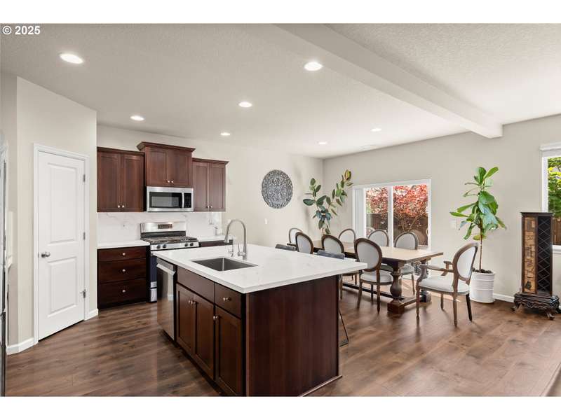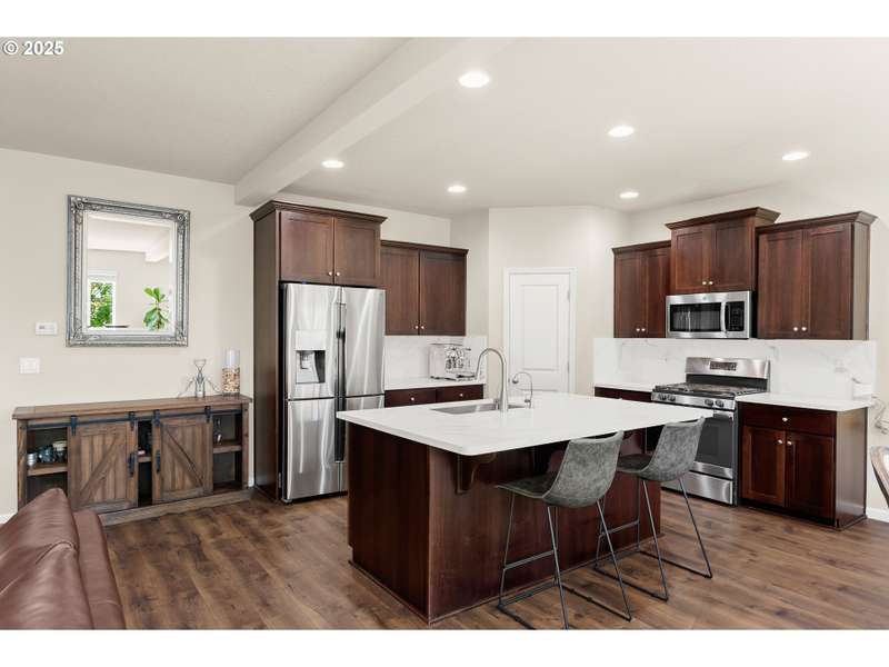 OPEN HOUSE OCT 25, 1-3PM Well-maintained home in the North Bethany neighborhood featuring updated luxury laminate floors on the main level. The kitchen boasts new quartz countertops, a full backsplash, an under-mounted stainless-steel sink, gas appliances, a built-in microwave, a French door refrigerator, a large island with a breakfast bar, and a pantry. The living room includes an updated fireplace mantle, while the dining room opens to a private, fenced yard. The spacious primary suite offers dual vanity sinks, a generous walk-in closet, a step-in shower, and a garden tub. There are three additional bedrooms, a laundry room with a washer and dryer included, and a top-level bonus/5th bedroom with a closet, perfect for a media room, game room, or home office. Additional features include a two-car garage, central AC, neighborhood parks, and nature trails