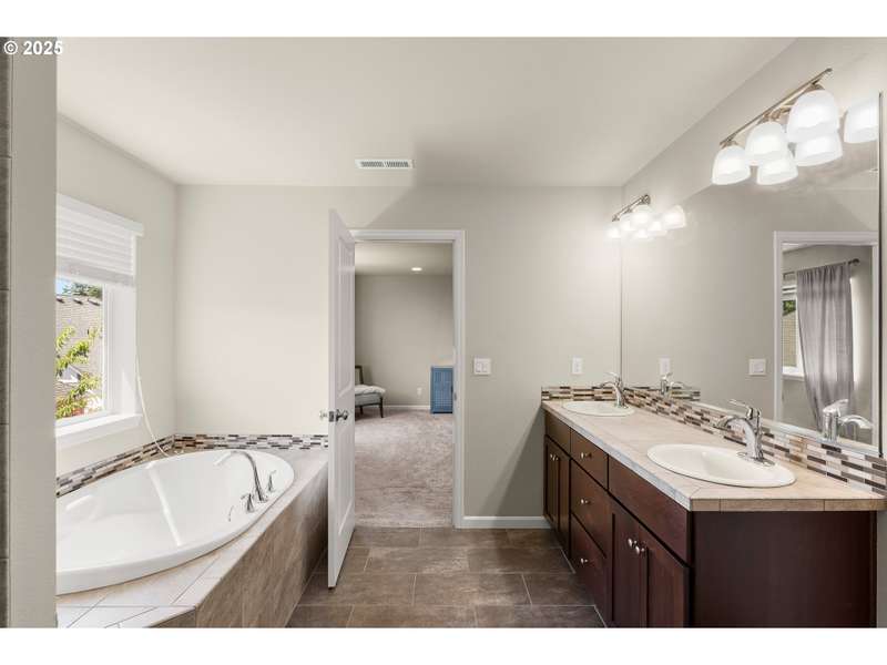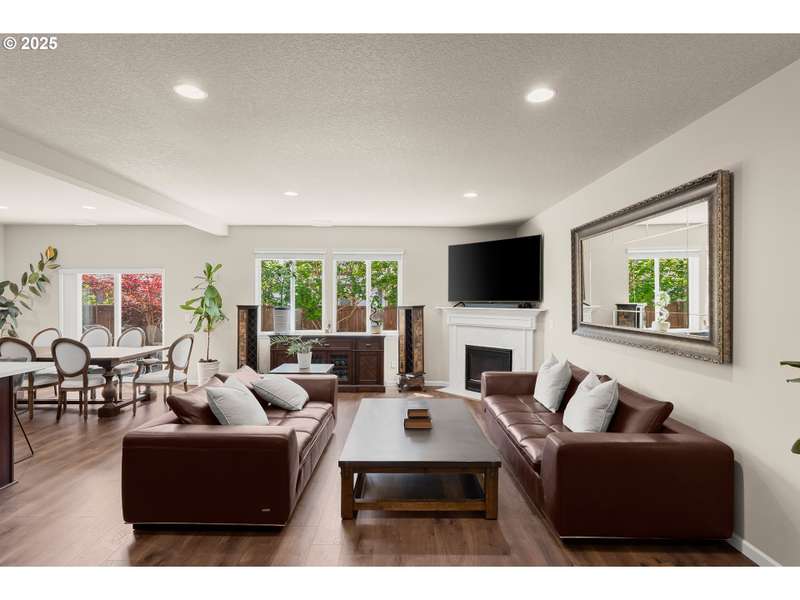Well-maintained home in the North Bethany neighborhood featuring updated luxury laminate floors on the main level. The kitchen boasts new quartz countertops, a full backsplash, an under-mounted stainless-steel sink, gas appliances, a built-in microwave, a French door refrigerator, a large island with a breakfast bar, and a pantry. The living room includes an updated fireplace mantle, while the dining room opens to a private, fenced yard. The spacious primary suite offers dual vanity sinks, a generous walk-in closet, a step-in shower, and a garden tub. There are three additional bedrooms, a laundry room with a washer and dryer included, and a top-level bonus/5th bedroom with a closet, perfect for a media room, game room, or home office. Additional features include a two-car garage, central AC, neighborhood parks, and nature trails