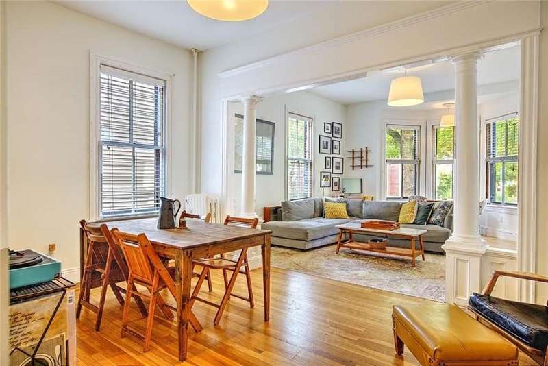 Stunning first floor condominium located in the Historic Armory District. This crisp, clean, 3 bedroom beauty is loaded with original detail. There are hardwoods throughout ,a double parlor, high ceilings, and large sun-filled rooms. The kitchen has been updated and has a modern, chic feel. There is a nice shared backyard area with a firepit, 2 assigned parking spots and plenty of basement storage. This is the perfect West Side location, close to Dexter park, area restaurants, coffee shops.