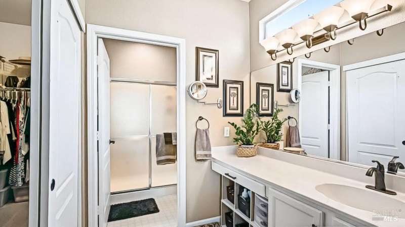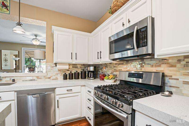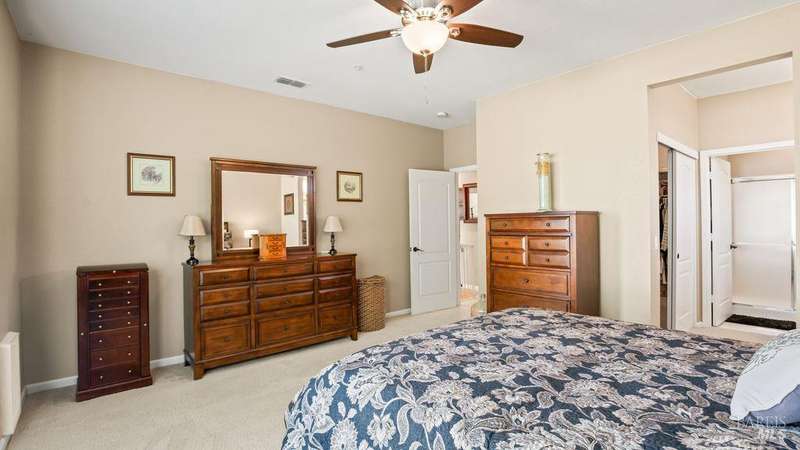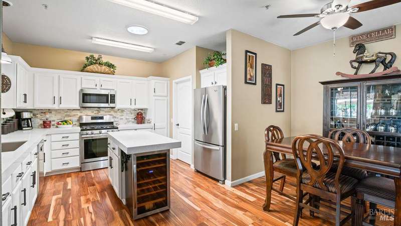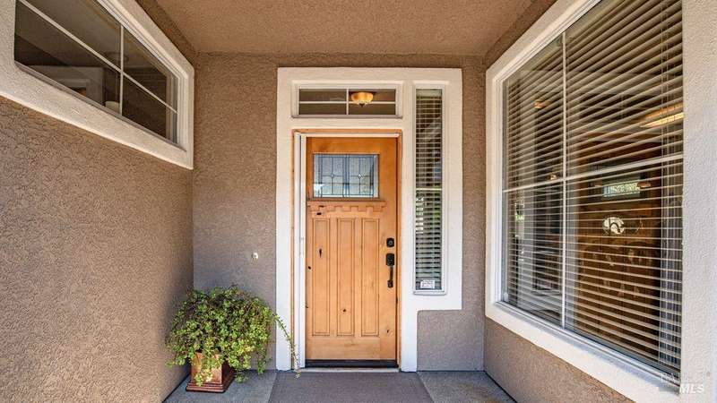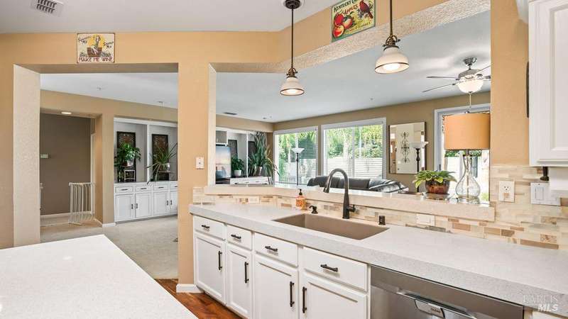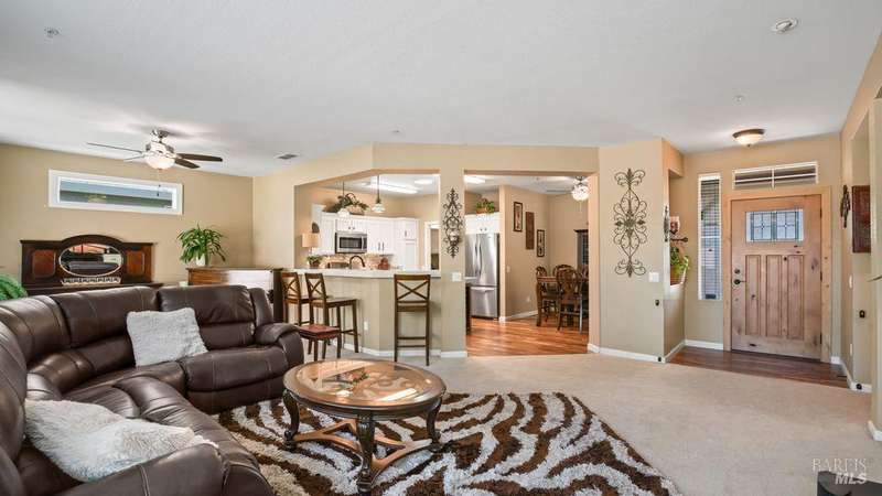 Pride of ownership shines in this popular Calistoga model, located in the desirable Clover Springs 55+ community. The open floor plan is perfect for entertaining, with new windows bringing in an abundance of natural light. The beautifully remodeled kitchen features pristine white cabinetry, newer appliances framed by elegant granite countertops, an extended island perfect for meal prep, and engineered hardwood Acacia flooring that adds warmth and durability. Entertaining isn't limited to the indoors. The expansive backyard offers room to roam, relax or host gatherings on the spacious patio. Enjoy mountain views from both the front and back of the home, where you can take in stunning sunrises and sunsets in a peaceful setting. Residents enjoy the exclusive access to the Fire Creek Lodge, pool, tennis, bocce, fitness center, clubhouse and nearby walking trails.