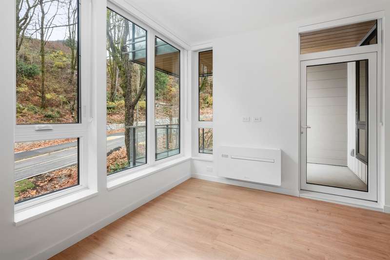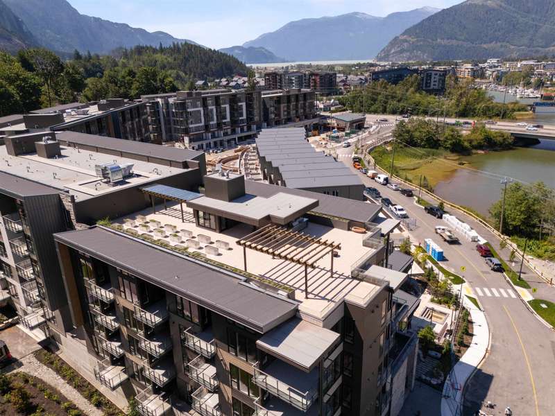 REDBRIDGE at SMOKE BLUFFS – Brand new, East & forest-facing 1 bed, 1 bath home with a large covered 138SF balcony and peaceful outlook to treed greenspace. Built for Squamish living, where gear storage, location, and livability meet. Features 9’ ceilings, oversized windows, and an Italian kitchen by Inform with 5-burner gas cooktop, island, pull-out pantry, and ample storage. Includes A/C, EV charger, laminate flooring, and a private XL locker. Access 20,000+SF of amenities: gym, hot/cold plunge, sauna, co-work space, rooftop deck, workshop & more. Steps from Smoke Bluffs, Valleycliffe trails, Mamquam Channel access to Howe Sound and minutes from downtown. Enjoy a “15-minute city” lifestyle - cafes, shops, markets, and parks all nearby with Squamish's world-class outdoors in the backyard