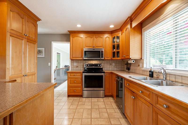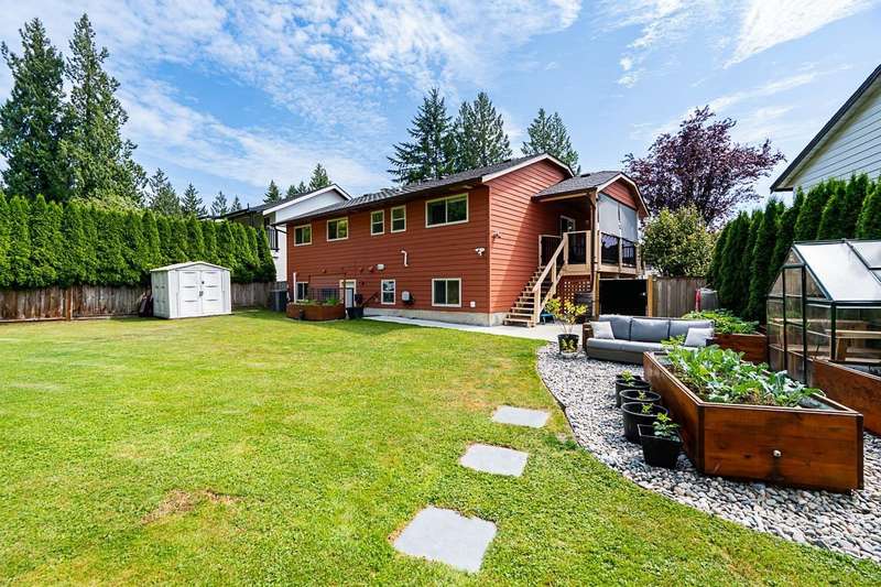 Beautifully maintained 5bed, 3bath Walnut Grove home tucked in a quiet cul-de-sac on a large, level, and private lot. The bright upper floor features oversized windows, fresh paint, new blinds, updated lighting, and a renovated bathroom (2022). The kitchen includes stainless appliances and opens to a wraparound deck with updated railings-perfect for BBQs. Downstairs offers a legal 2-bedroom suite with private entry, laundry, new fridge (2022), and dishwasher (2023), ideal for in-laws or rental income. Additional upgrades include A/C, high-efficiency hot water tank, 50-year roof, solar panels, EV charger, PEX plumbing, concrete patio, exterior paint, and self-watering garden beds. Walk to Dorothy Peacock Elementary, Walnut Grove Secondary, parks, shops, trails, and enjoy easy Hwy 1 access. (id:58403)