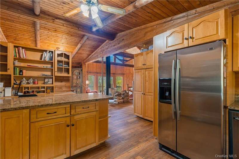 Paradise Found! A unique custom built Adirondack Style Log Home located in Kent Cliffs, NY. This 3 Bedroom 3 Bath home features a rugged timber framed roof and loft system. The large exposed beams and 3rd level loft are a focal point of this Adirondack dream home only 60 miles north of NYC. The Great Room with western exposure, seasonal views and a wood burning stove "guaranteed to warm your heart on cool autumn evenings". The sunny country kitchen and dining room lead to the oversized deck overlooking the enduring beauty of the Hudson Highlands. An additional family room, office, laundry room and 3rd full bath with plenty of storage in the lower walk-out level completes this country charmer. Seven Hills Lake is a private lake community complete with a sandy beach and a boat launch for canoeing and kayaking. Seven Hills is surrounded by State preserve lands and NYC reservoirs, perfect for convenient hiking. Short drive to Fahnestock State Park, Appalachian Trail and Cold Spring. Add