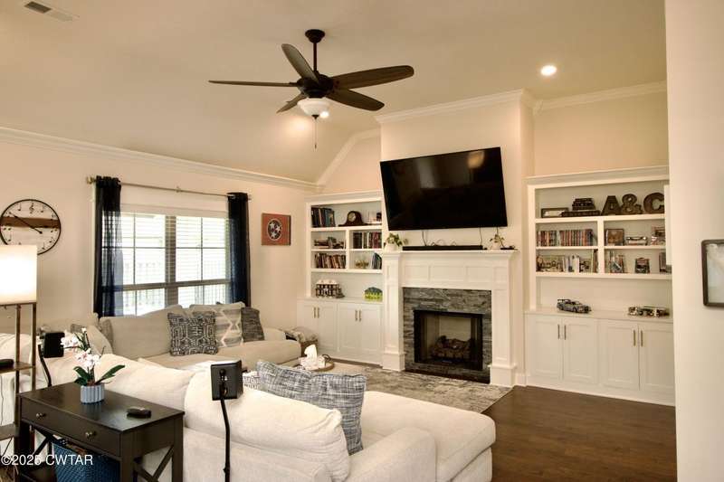 A stunning opportunity awaits you in North Jackson's most sought-after upscale neighborhood. This spacious 4-bedroom, 2.5-bathroom home is perfect for your family's needs, offering a blend of elegance and functionality. Step inside to an open-concept living space that flows seamlessly from one room to the next, creating an inviting atmosphere for both daily life and entertaining. The living room features beautifully crafted custom-built bookshelves, providing a perfect spot to display your favorite books and decor. The gourmet kitchen is a chef's delight, boasting an oversized island, and sleek solid surface countertops that extend throughout the home. This space is designed for both culinary creativity and casual gatherings. Retreat to the large master suite, a private sanctuary complete with a luxurious en-suite bathroom. Indulge in the separate soaking tub and a sleek tile shower, offering a spa-like experience right at home. A generous walk-in closet provides ample storage for your wardrobe.This home is equipped with modern upgrades for your comfort and convenience, including a tankless water heater for endless hot water and upgraded flooring that adds a touch of sophistication to every room. Don't miss your chance to own this exceptional home in a prestigious community