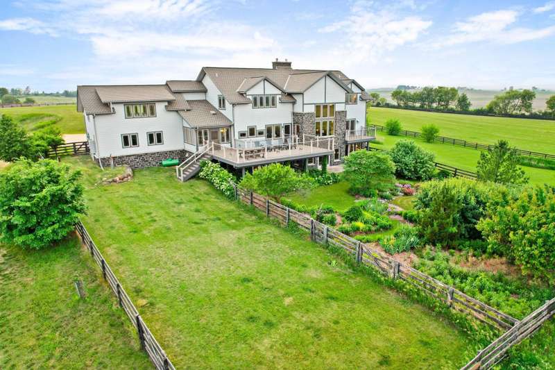 Welcome to an extraordinary retreat where world-class equestrian amenities meet the natural beauty of Wisconsin’s legendary Driftless Region. Nestled on 180 pristine acres just minutes from charming Mount Horeb, this private estate is more than a property—it’s a lifestyle. At the heart of the estate lies a stunning 5,800 sq ft luxury home, thoughtfully designed to capture sweeping views of rolling ridgelines and the kind of quiet that only untouched land can offer. From sunrise coffee on the deck to sunset rides along the 2.8-mile private trail through the driftless area, every day here is infused with tranquility, elegance, and adventure. For the discerning equestrian, state-of-the-art horse facilities (see attached docs).