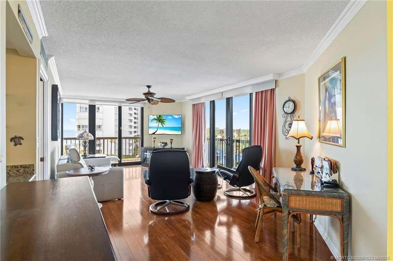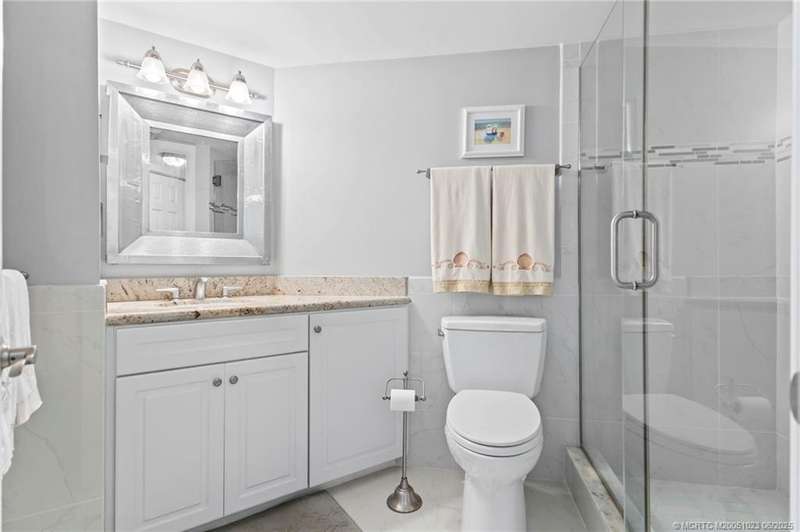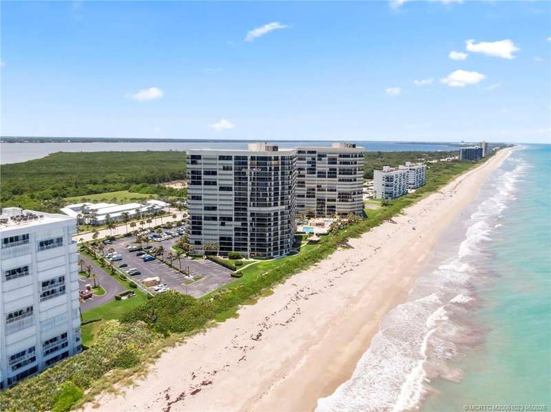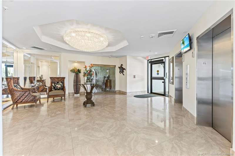 Oceanfront. Southeast corner unit is located on the 5th floor. The southeastern exposure gives you warmth in the winter and cool breezes during the summer. Totally renovated including new impact glass sliders & windows plus accordion shutters on the balcony for protection. Easy to lock & leave knowing everything is protected from storms as much as is possible. Gorgeous kitchen with all the upgrades & offering spectacular views of the ocean. Not only do you have sweeping views of the ocean from almost every room in the residence, including the sumptuous master suite, but there are also views of the intracoastal waterway & the Jensen Beach Causeway. Gated community.