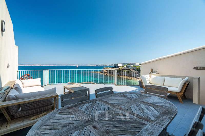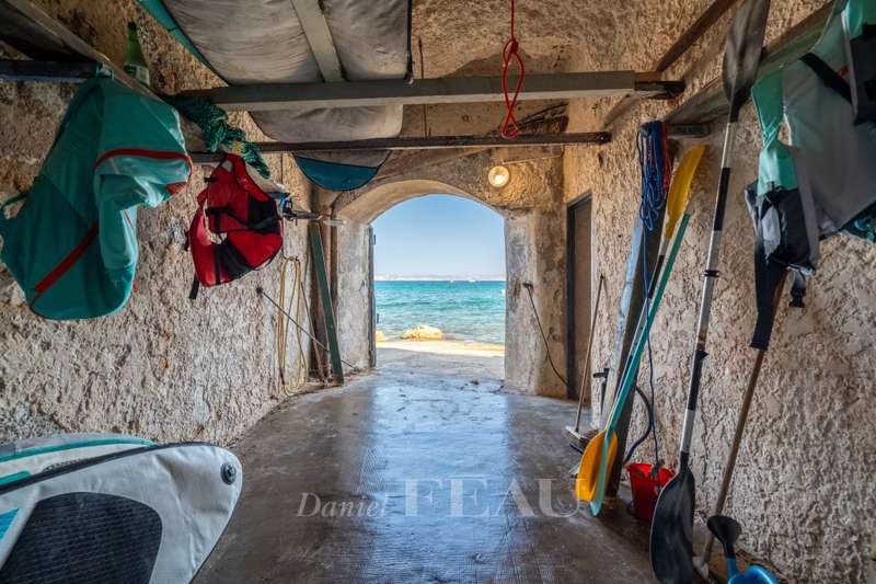 This near 190 sqm property located a stone’s throw from the shops and the beach benefits from direct private access to the sea. It includes an entrance hall, a spacious living/reception room bathed in sunshine thanks to wide patio windows opening onto a terrace above the Mediterranean, a semi open-plan kitchen, three bedrooms including a master suite with a terrace commanding an open view, and a shower room. On a basement with a utility room. With a swimming pool, a summer lounge and dining area, and a further terrace with steps accessing the sea and a boathouse. The plot benefits from a parking space, and two rented parking spaces are available.