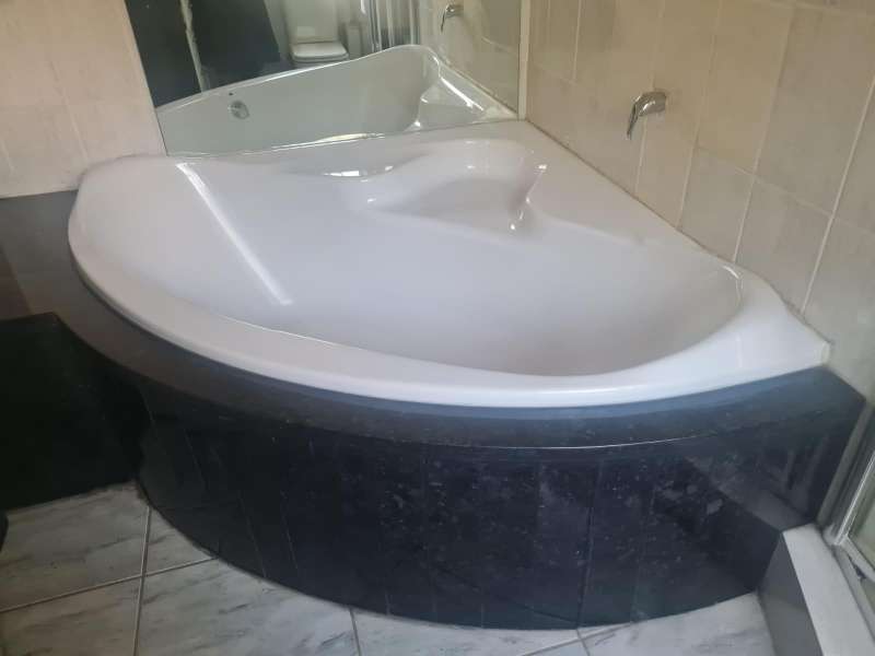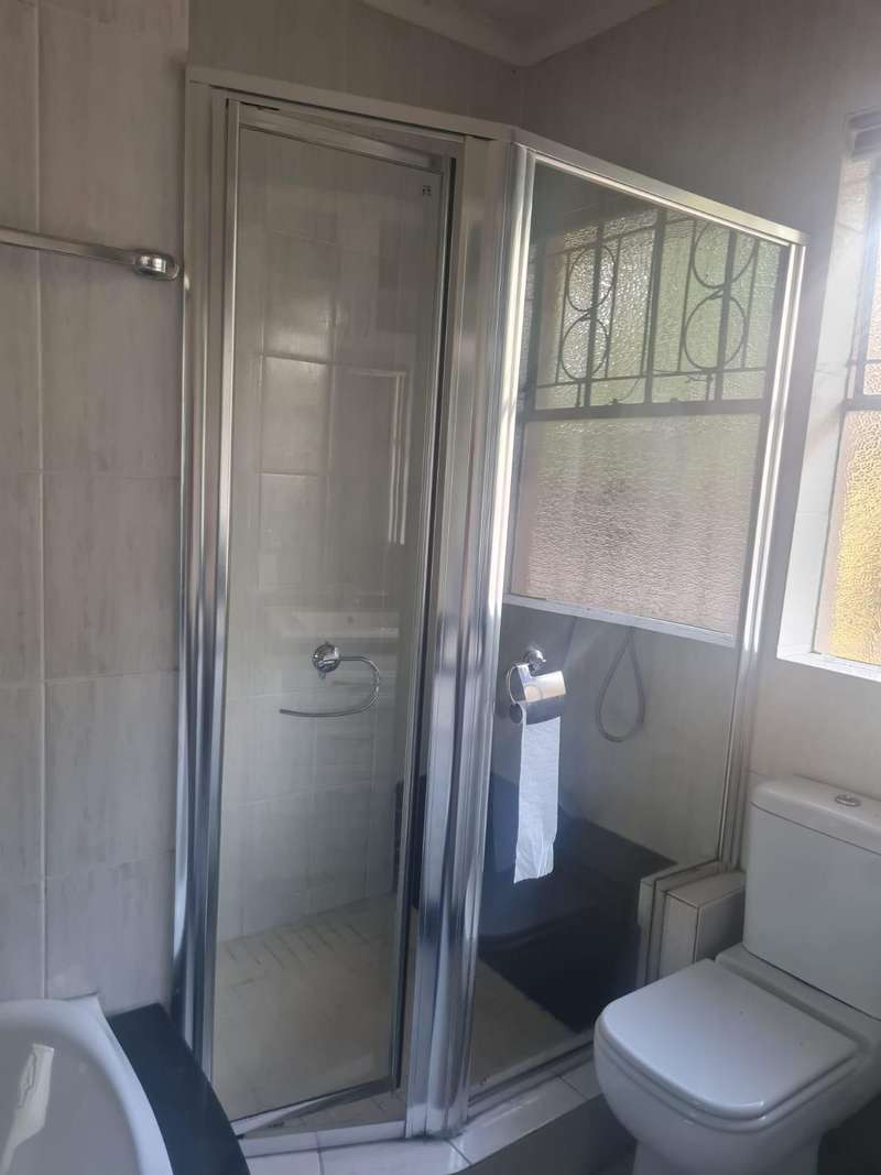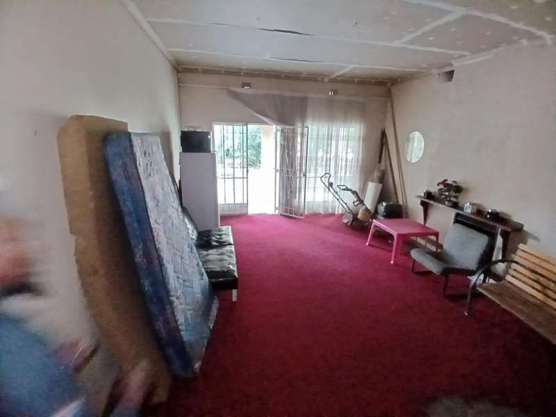 The property listed below is up for grabs. This well-kept home, which sits on a 2169 square metre lot and has four bedrooms, two bathrooms, a modern bathroom with a shower in the main bedroom, a large kitchen, a double garage and a formal lounge with parquet flooring and lots of cabinets, is ideal for turning into an income-generating venture. dining area covered in carpet The flat has two beds.