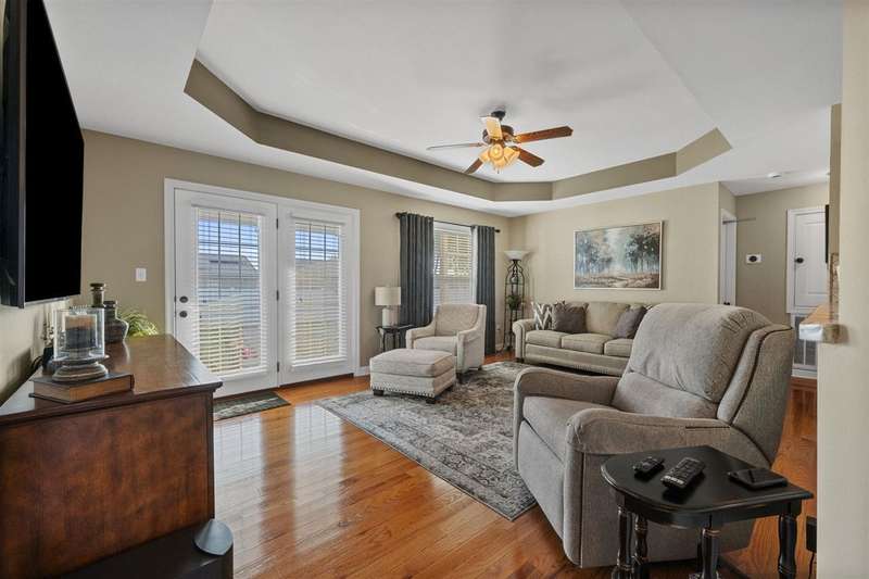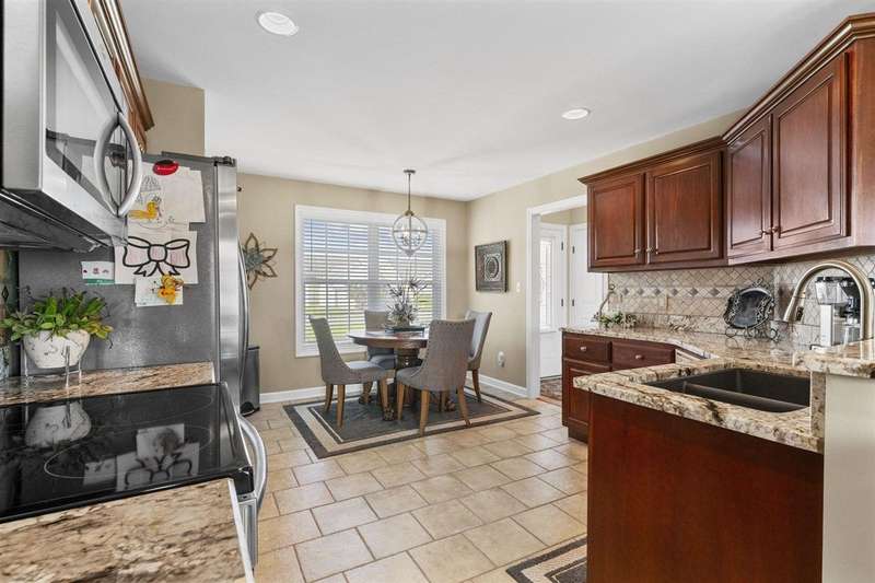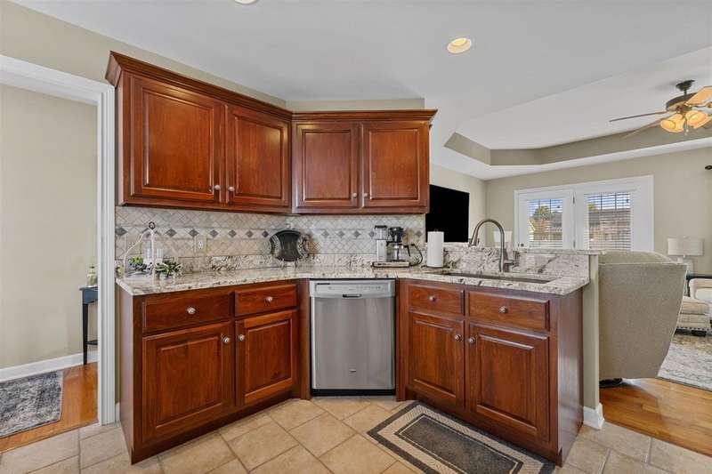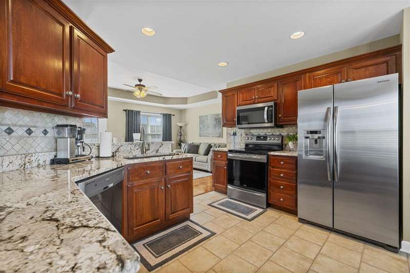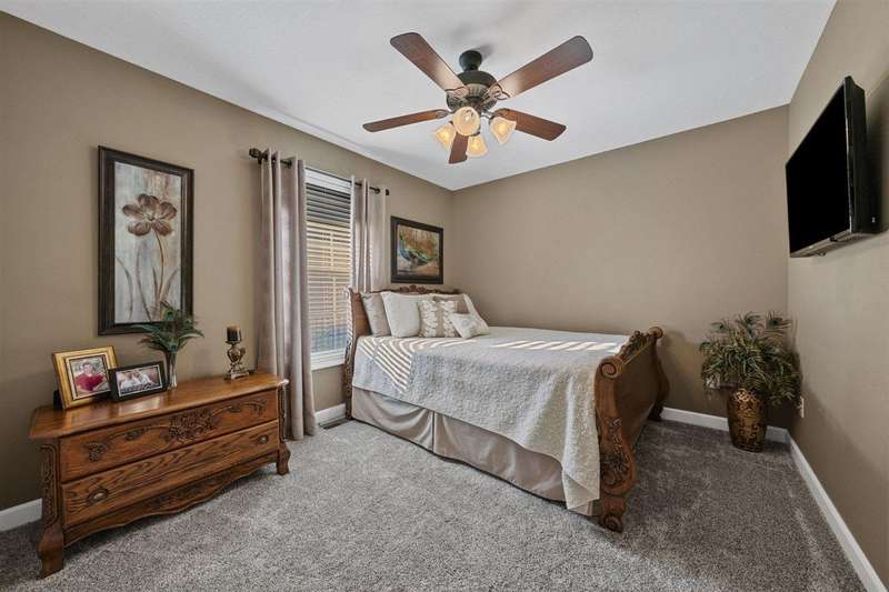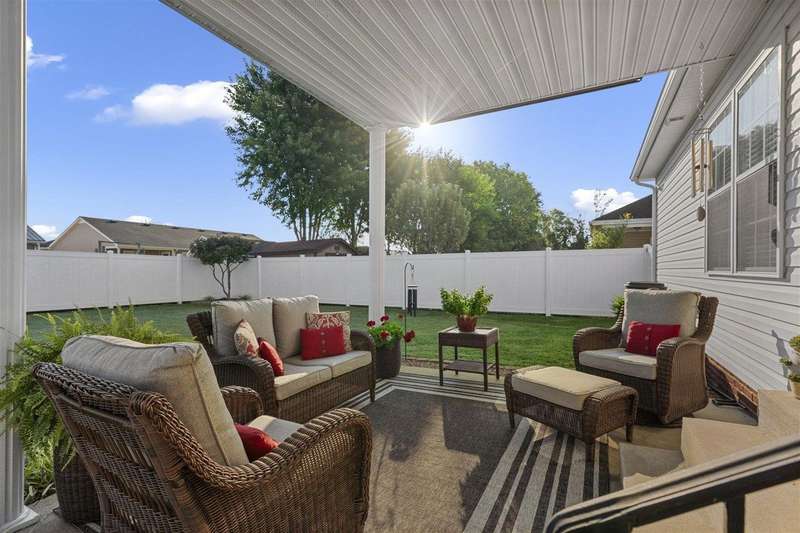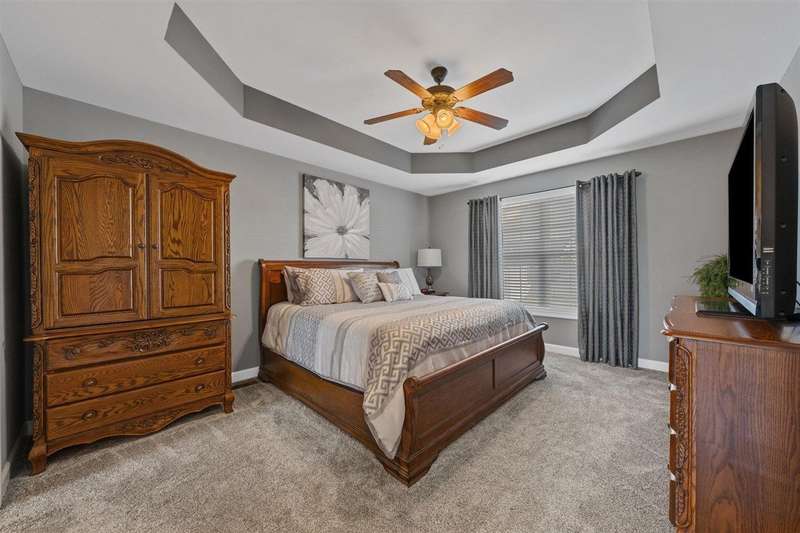 Welcome to this beautiful 3-bedroom, 2-bath home that combines comfort, functionality, and style. The spacious eat-in kitchen features sleek granite countertops, offering the perfect space for cooking and casual dining. A large great room with tray ceiling creates an inviting atmosphere ideal for relaxing or entertaining guests. The well-appointed master suite provides a peaceful retreat with ample space and comfort and an ensuite bath with large vanity with new quartz countertops. Both secondary bedrooms are generously sized, also with new quartz countertops, and the home also includes a functional utility room with built-in cabinets for extra storage and convenience. Step outside to enjoy the serene covered back patio overlooking a beautifully landscaped, tranquil yard complete with privacy fence???perfect for morning coffee or evening unwinding. This home is full of charm , inside and out, and move-in ready with updated carpet in bedrooms, new paint, and a 3-year-old roof and HVAC !