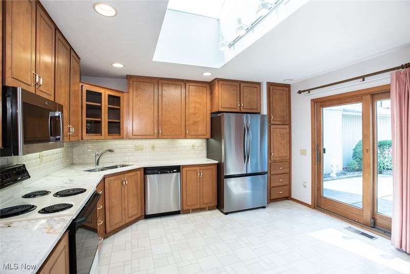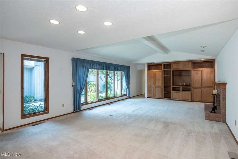 OLYMPIA COMMUNITY and nestled on a culdesac.......This two bedroom, 2.5 bath ranch cluster will be sure to meet your easy living lifestyle. Lovingly maintained throughout with an inviting entrance to the open Great Room and Formal dining with a half bath for guests. A full wall of cabinetry with wet bar and fireplace for the fall weather coming up. Lots of southern exposure, natural lighting with full size floor to ceiling windows in the main living area. The spacious kitchen offers a full skylight, loads of cabinetry, desk and walkout to the enclosed private courtyard that is perfect for entertaining. The primary suite also has a walkout and view of the courtyard. An en-suite bath with double sinks, shower and window complete the bath. A very spacious walk-in closet in the primary suite adds plenty of storage area. An additional generous bedroom with full bath perfect for your guests! Laundry room has great storage and lighting too with wall cabinets above washer/dryer. Very neutral decor throughout waiting for the new owner....Olympia with access to the many amenities: Indoor heated pool / sauna, fitness room, library, multi-purpose room, kitchen, card room, dining room and paved walking paths, plus a bocce court. JOIN this relaxed, active and inviting lifestyle central to the heart of Strongsville.