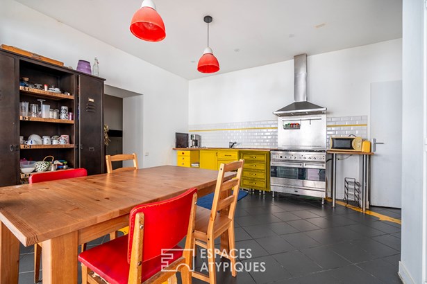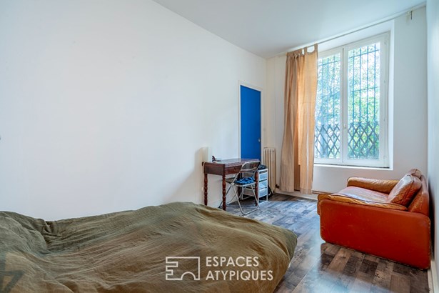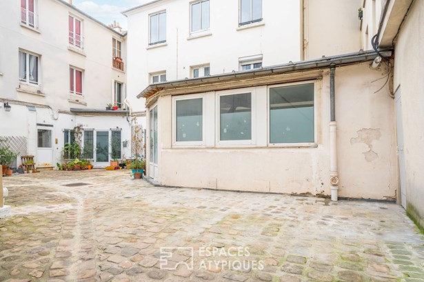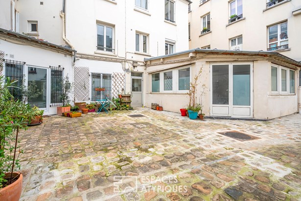 In the immediate vicinity of the Saint-Martin canal and the Saint-Louis hospital, this former workshop of 168.14 m2, transformed into a home, is located in the quiet of a pretty paved courtyard.