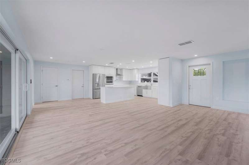 This 2 bedroom 2 bath home offers direct Gulf access Via a short trip through Mullock Creek and NO BRIDGES to the open waters of the Gulf of Mexico!!! This community is quiet, private and teaming with avid boaters/fisherman as well! NO HOA fees here for that added sense of freedom! This is your opportunity to rebuild your own Boat Dock and Boat lift to your taste! This home has been remodeled with new white kitchen cabinets, new appliances including fridge ,stove, dishwasher and microwave, HVAC and septic system, tankless water heater! The fresh faced bathrooms are warm, modern and spacious! Nearby points of interest are Coconut Point Mall, SWFL International Airport, Florida Gulf Coast University, Lakes Park, Six Mile Cypress Slough, Gulf Coast Town Center, and the white-sandy beaches of SWFL. On rare occasions do you find these homes for purchase at such a great value!! This home will sell quick! Come and see your future here!