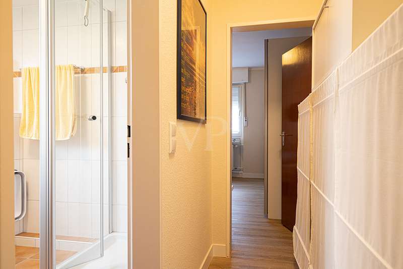 This residential complex with various houses in the Frankenforst district was built in 1970. The 3-room apartment offered here is located in a smaller building with only four units and is on the mezzanine floor. The apartment has a classic layout with two bedrooms, a separate kitchen and an attractive living area with direct access to the balcony. A shower room with natural light and a guest WC are naturally available. This apartment has a special right of use to a garden area, which can be reached via a staircase from the private balcony. Additional rooms, such as a cellar and a separate utility and drying room, can be found in the basement of the building. There is also a bicycle storage area. The owners have carried out a number of modernizations for the current tenant, who has lived in this apartment since 2018. Among other things, the screed, which was broken in some areas, was renewed and a parquet-look vinyl was laid, and a new shower was also installed. The tenancy should be continued if possible. The condition of the apartment can be described as very well maintained. The property offer is rounded off by an outdoor parking space.